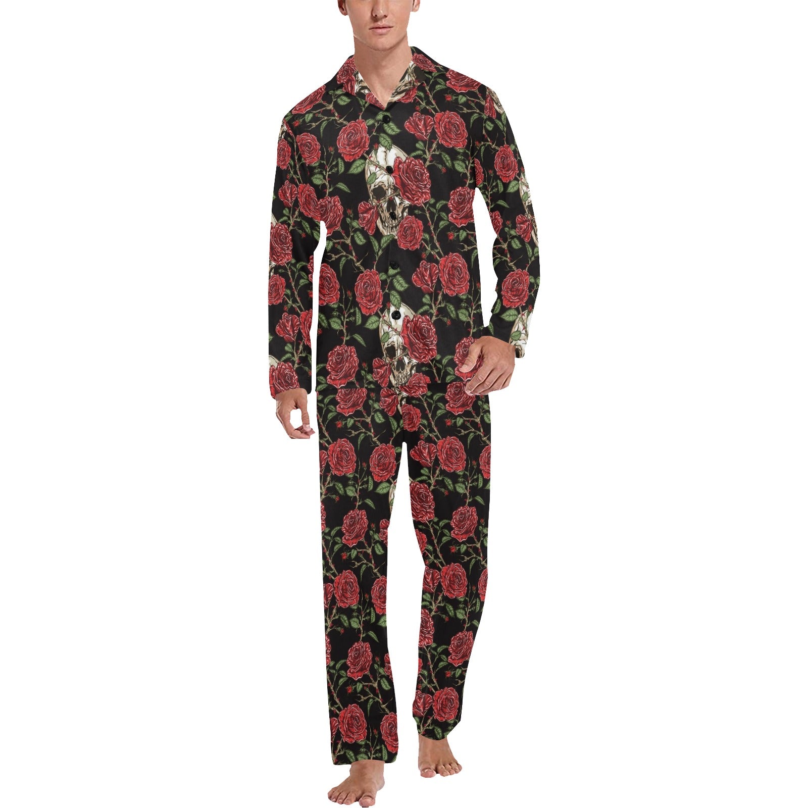 Skull And Roses Print Design LKS303 Men's Long Pajama Set