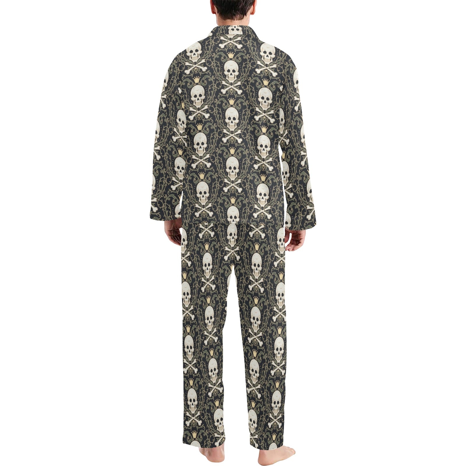 Skull King Print Design LKS307 Men's Long Pajama Set custom-made-to-order and handcrafted to the highest quality standards.