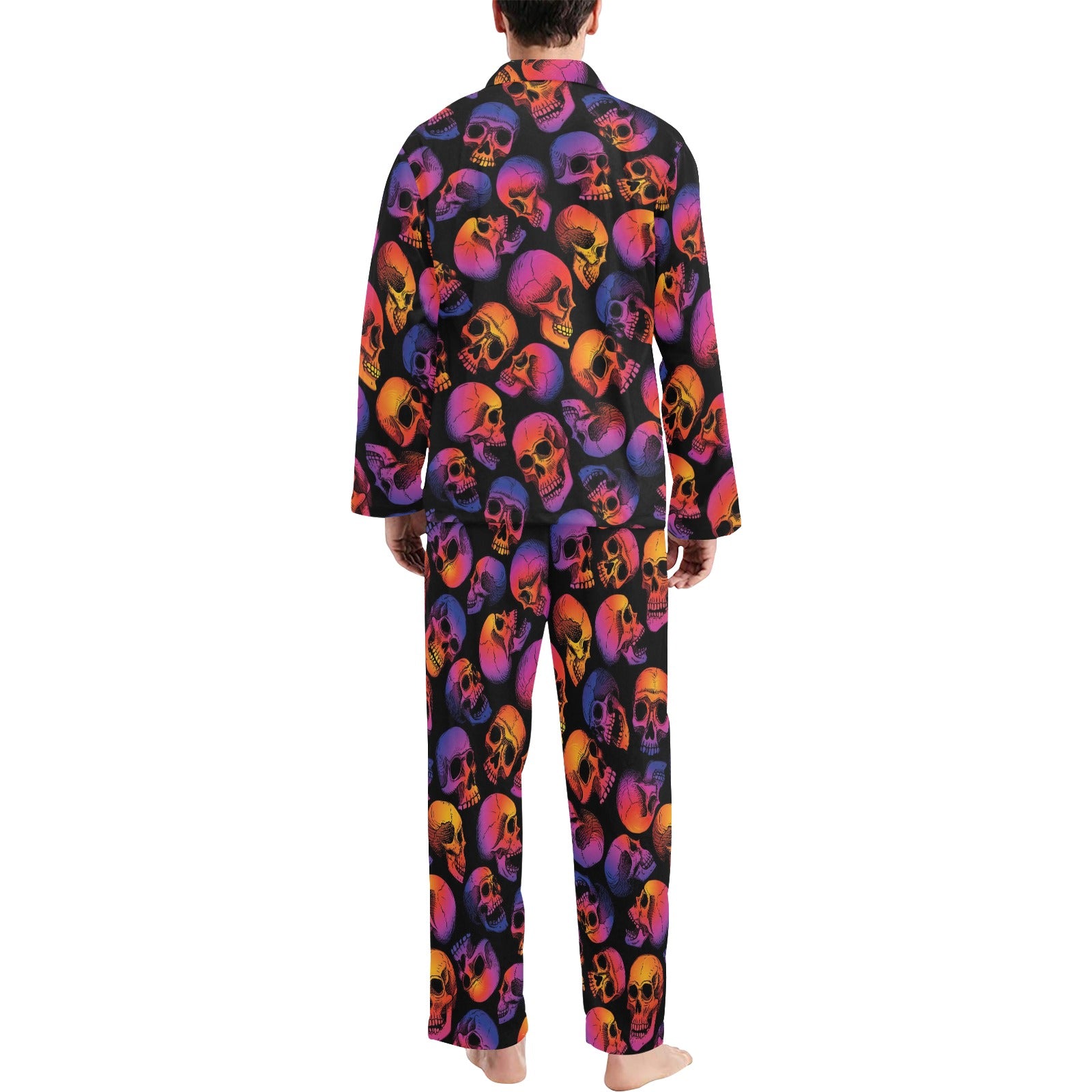 Skull Multicolor Print Design LKS3011 Men's Long Pajama Set custom-made-to-order and handcrafted to the highest quality standards.