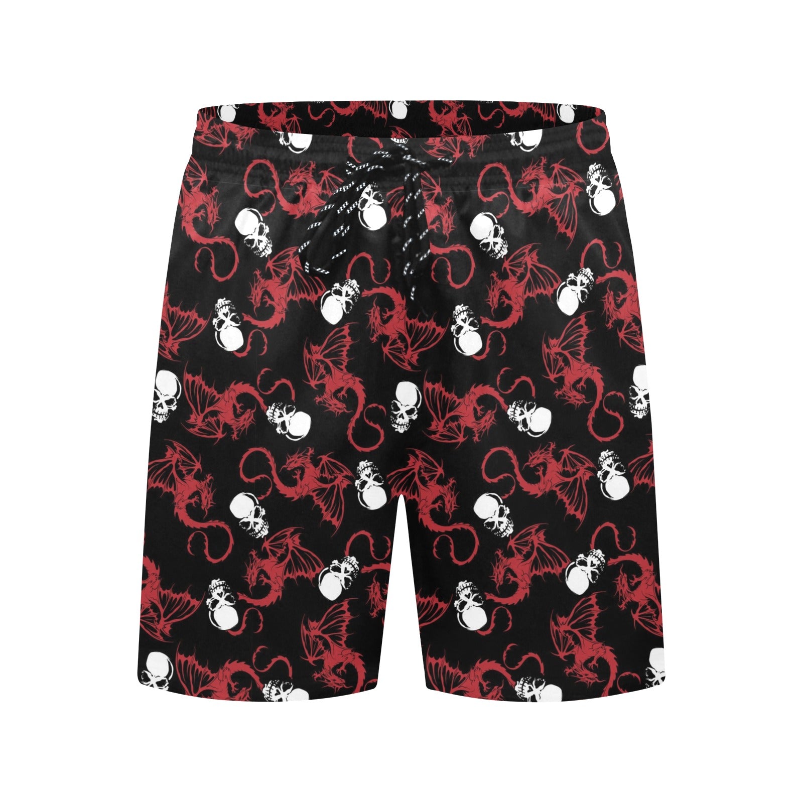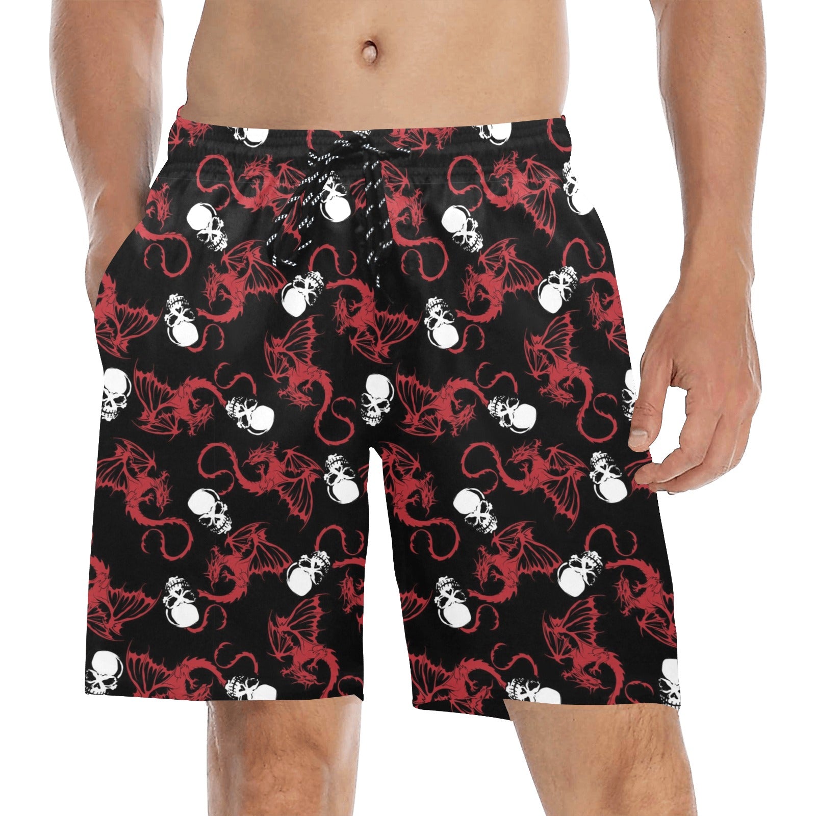 Skull With Red Dragon Print Design LKS304 Men's Swim Trunks Beach Shorts