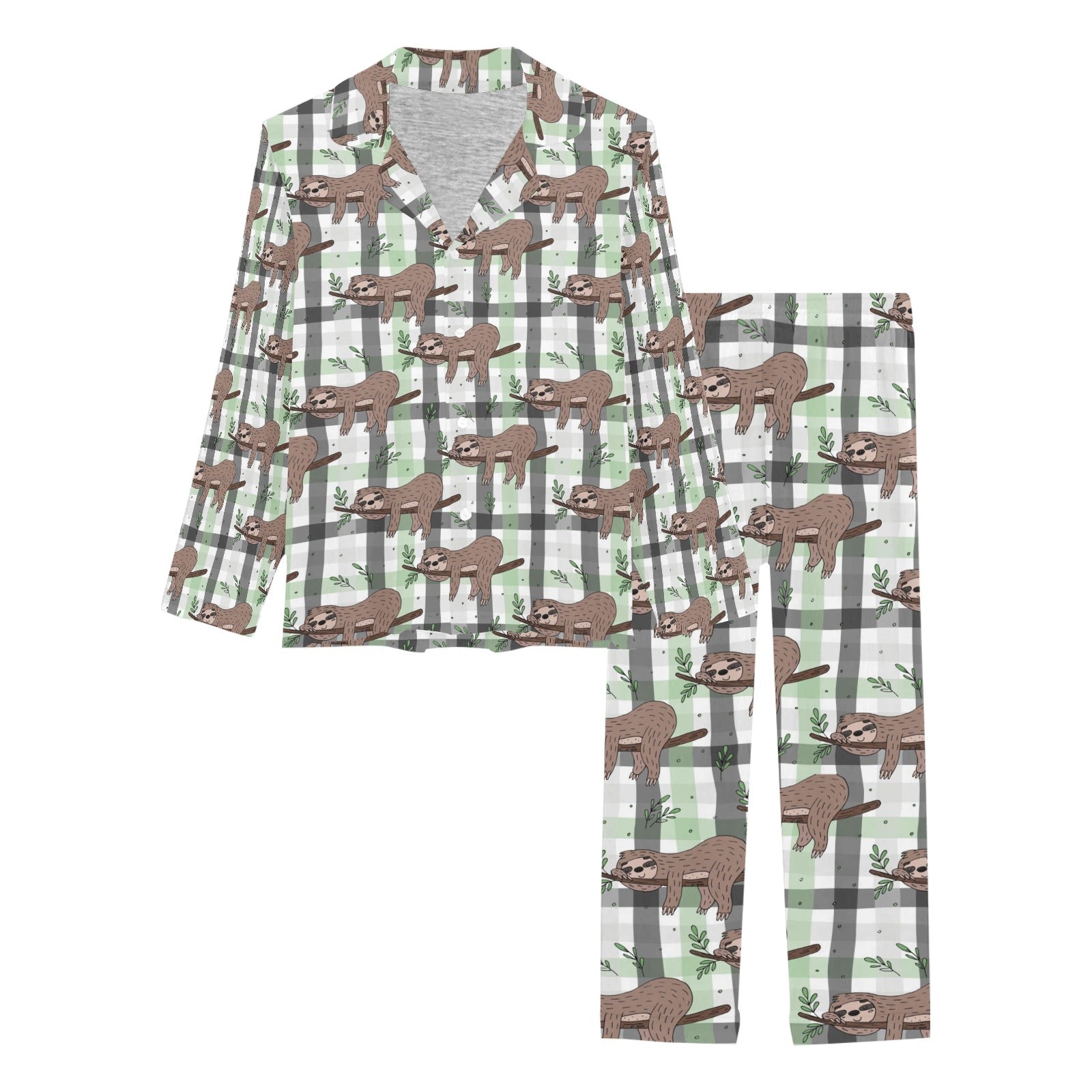 Sloth Print Design LKS301 Women's Long Pajama Set Made to Order Item. It is hand-cut and sewn just for your order! This process starts as soon as your order is placed and may have a processing time of 5-9 business days before it ships.