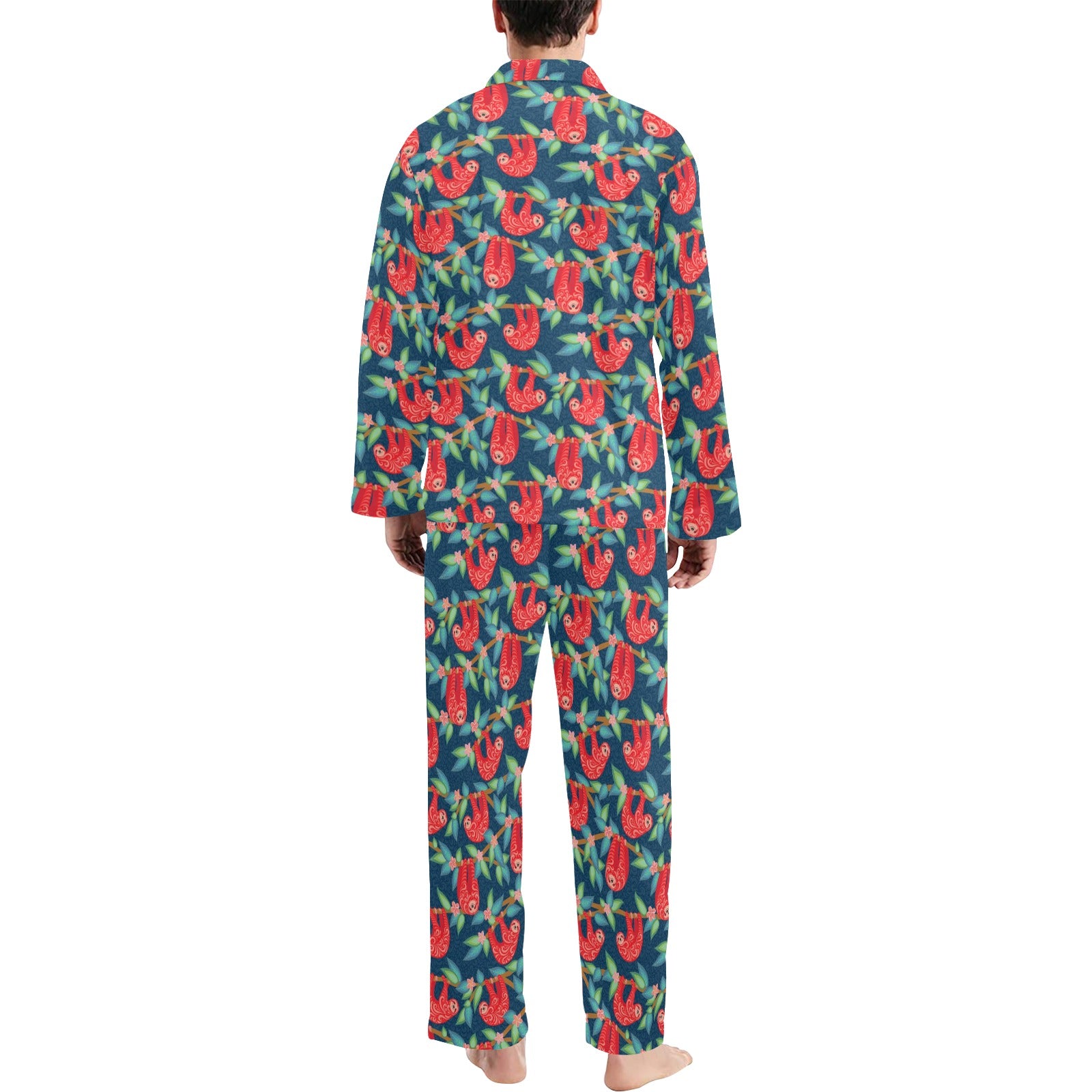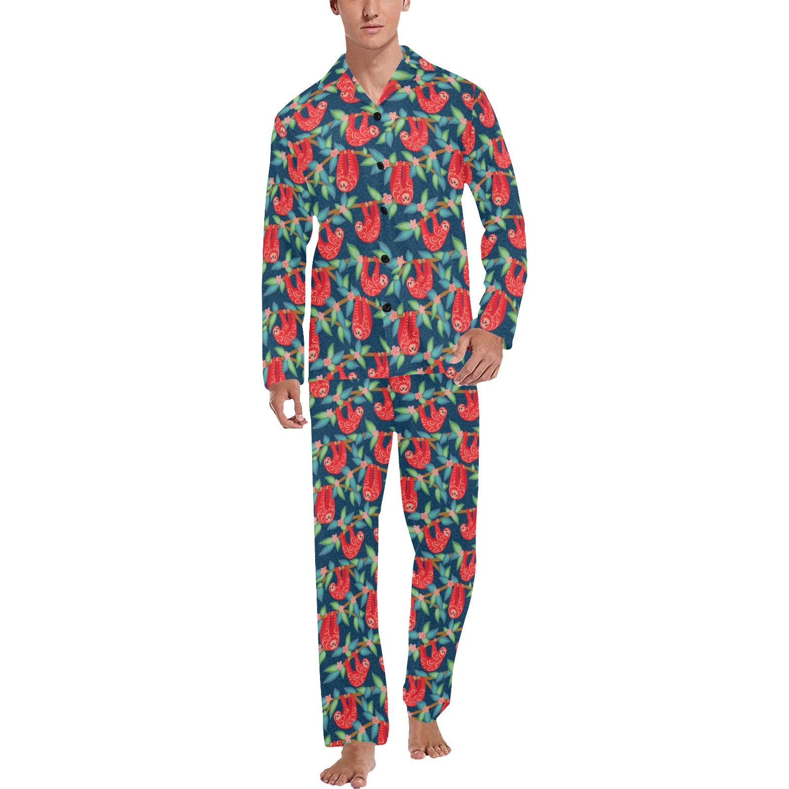 Sloth Red Design Themed Print Men's Long Pajama Set custom-made-to-order and handcrafted to the highest quality standards.