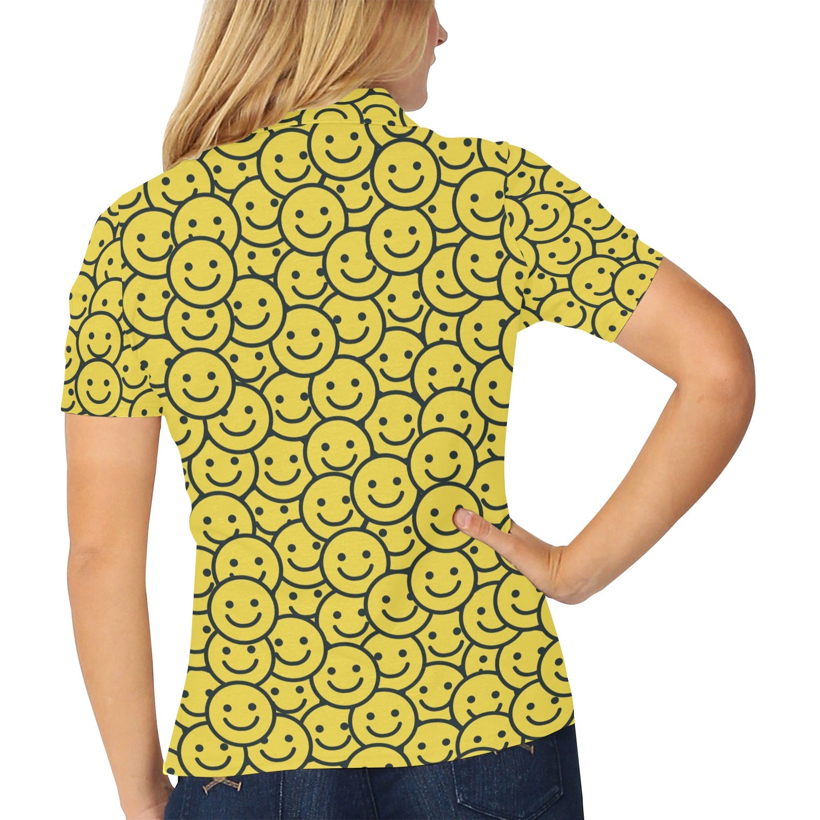 Smiley Face Emoji Print Design LKS302 Women's Polo Shirt