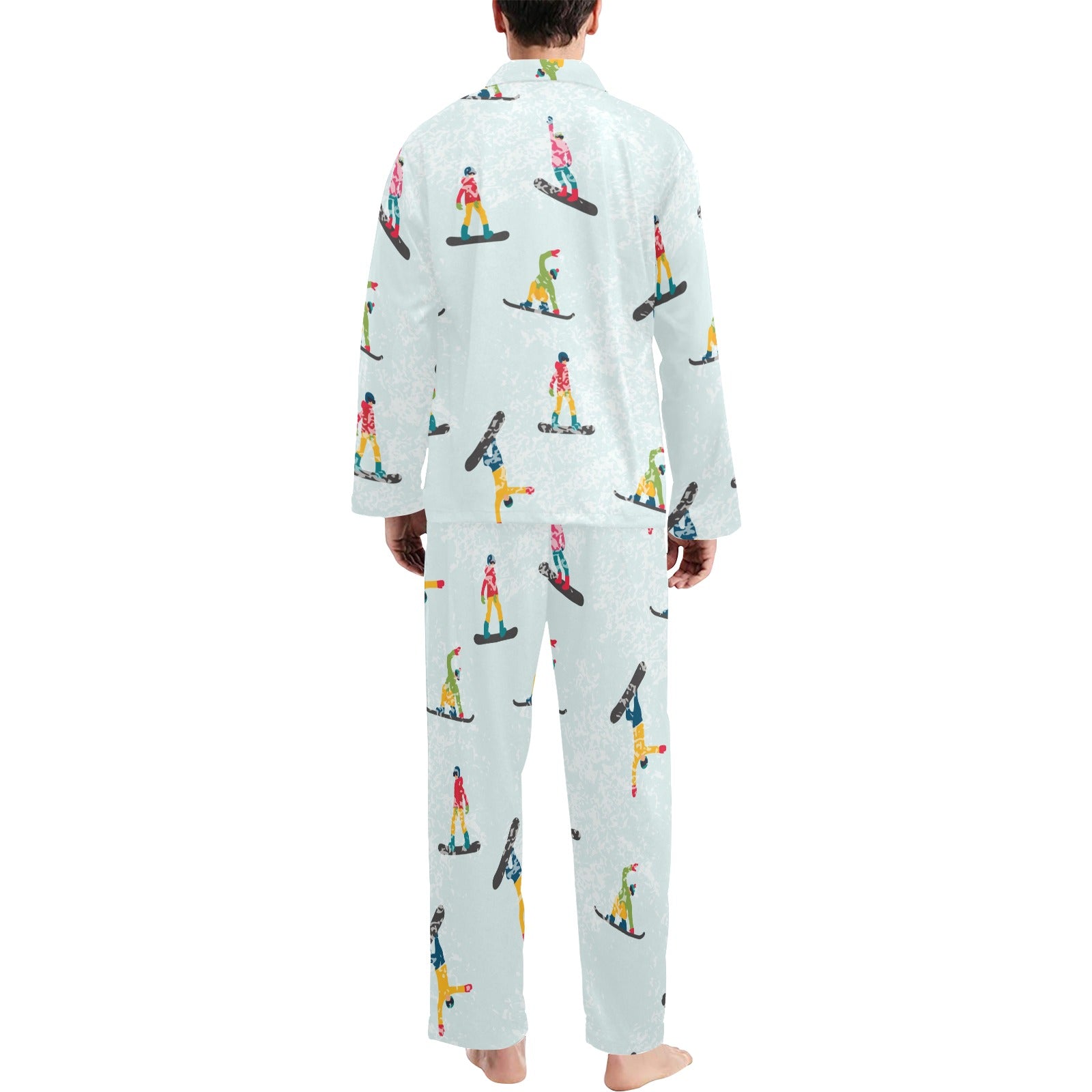Snowboard Print Design LKS304 Men's Long Pajama Set custom-made-to-order and handcrafted to the highest quality standards.