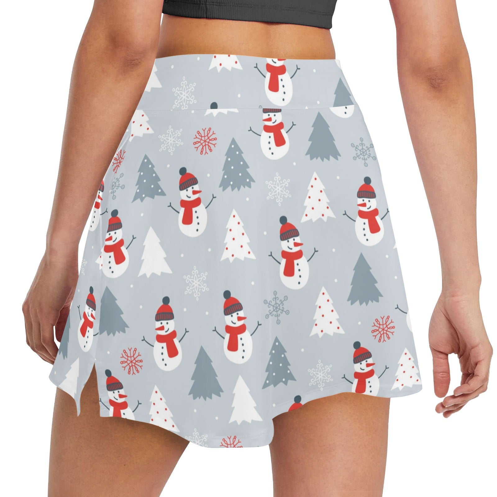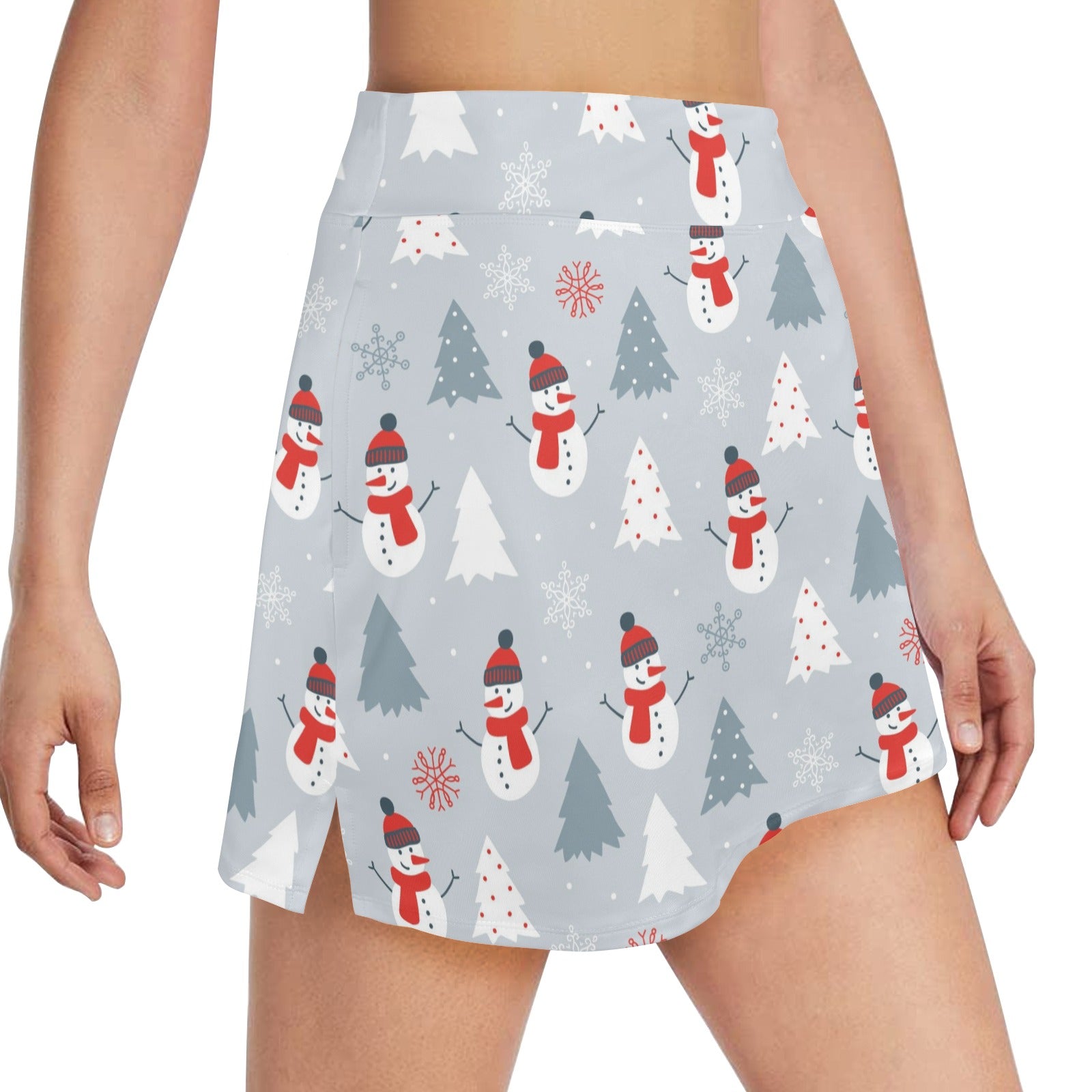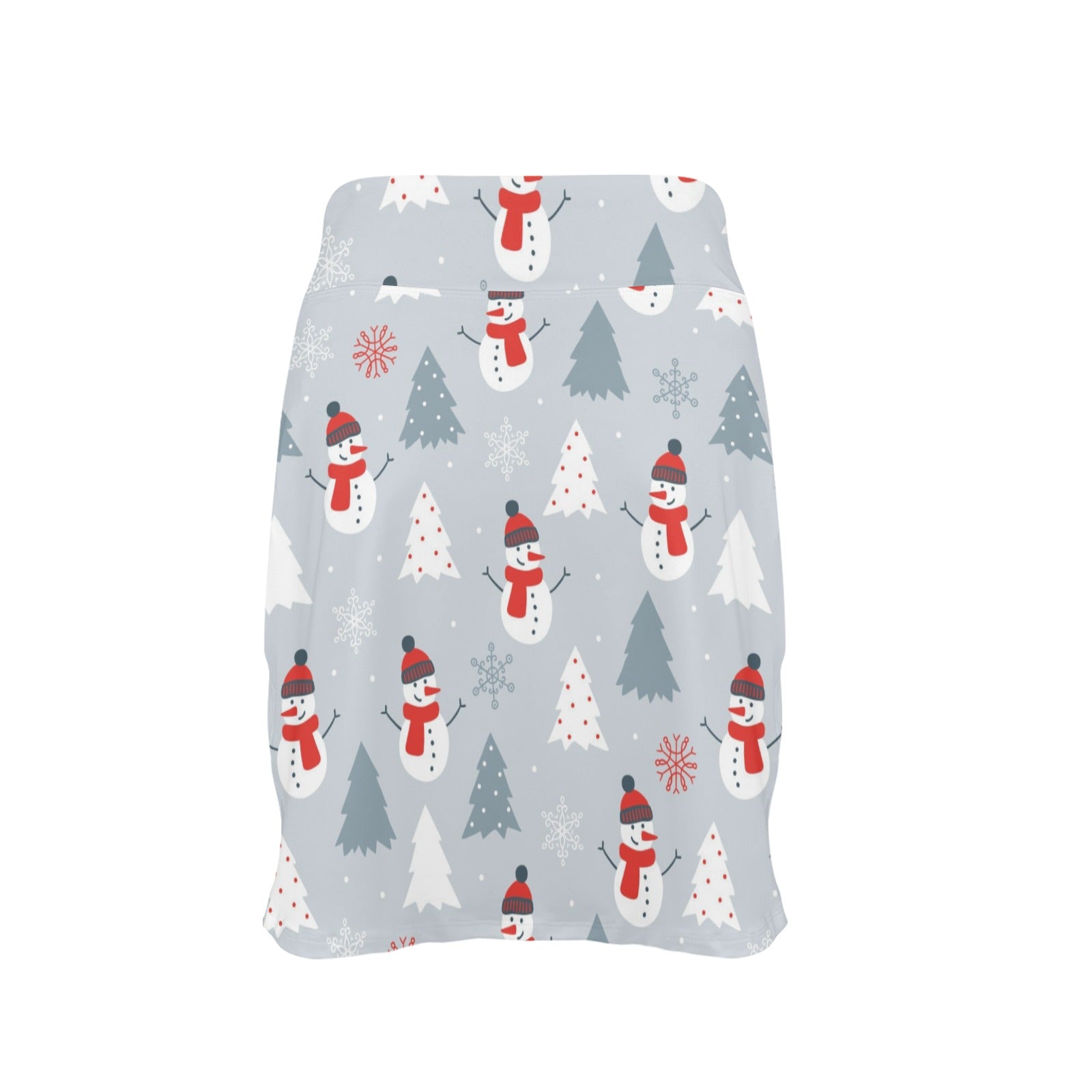 Snowman Print Design LKS302 Women's Golf Skirt with Pocket