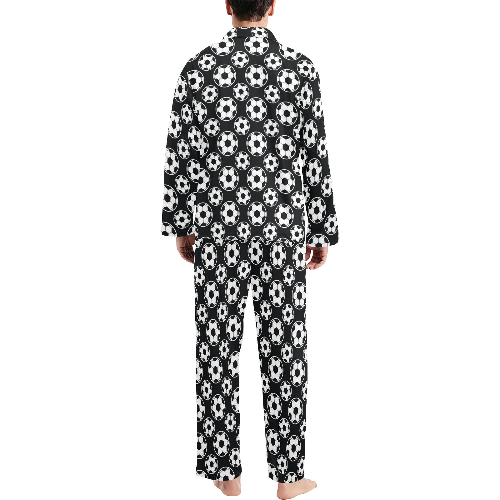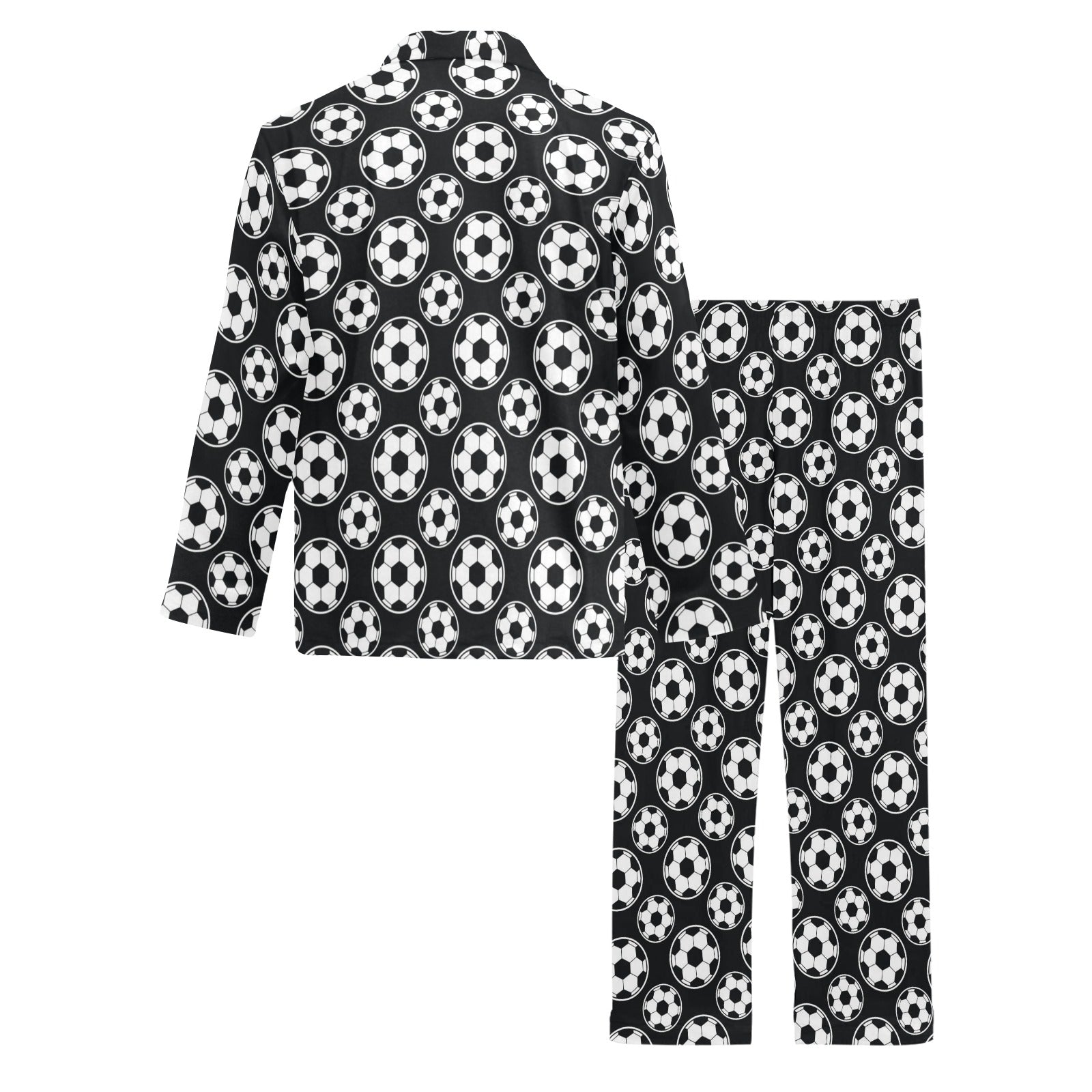 Soccer Ball Black Print Pattern Men's Long Pajama Set custom-made-to-order and handcrafted to the highest quality standards.
