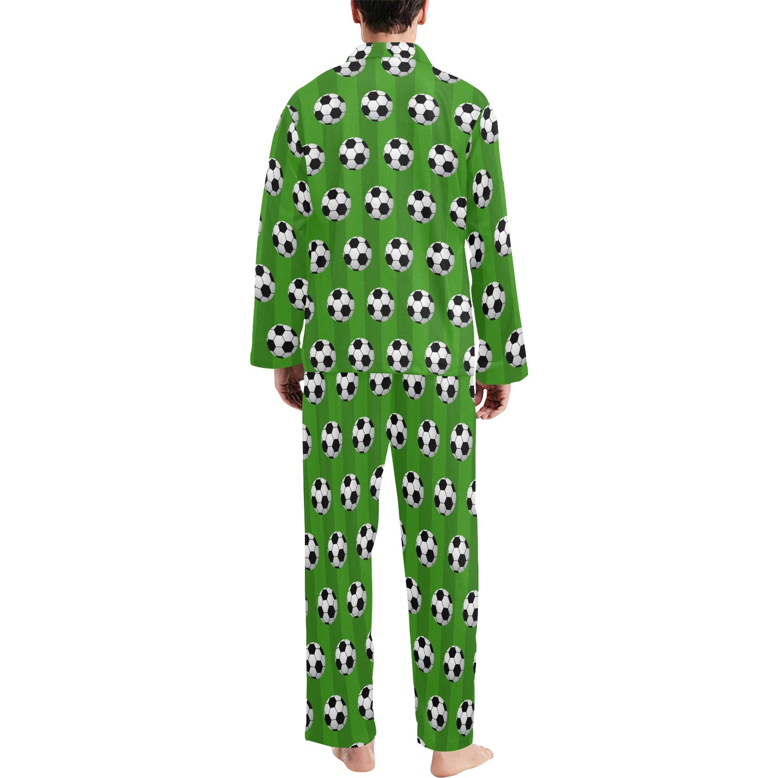 Soccer Ball Green Backgrpund Print Men's Long Pajama Set custom-made-to-order and handcrafted to the highest quality standards.