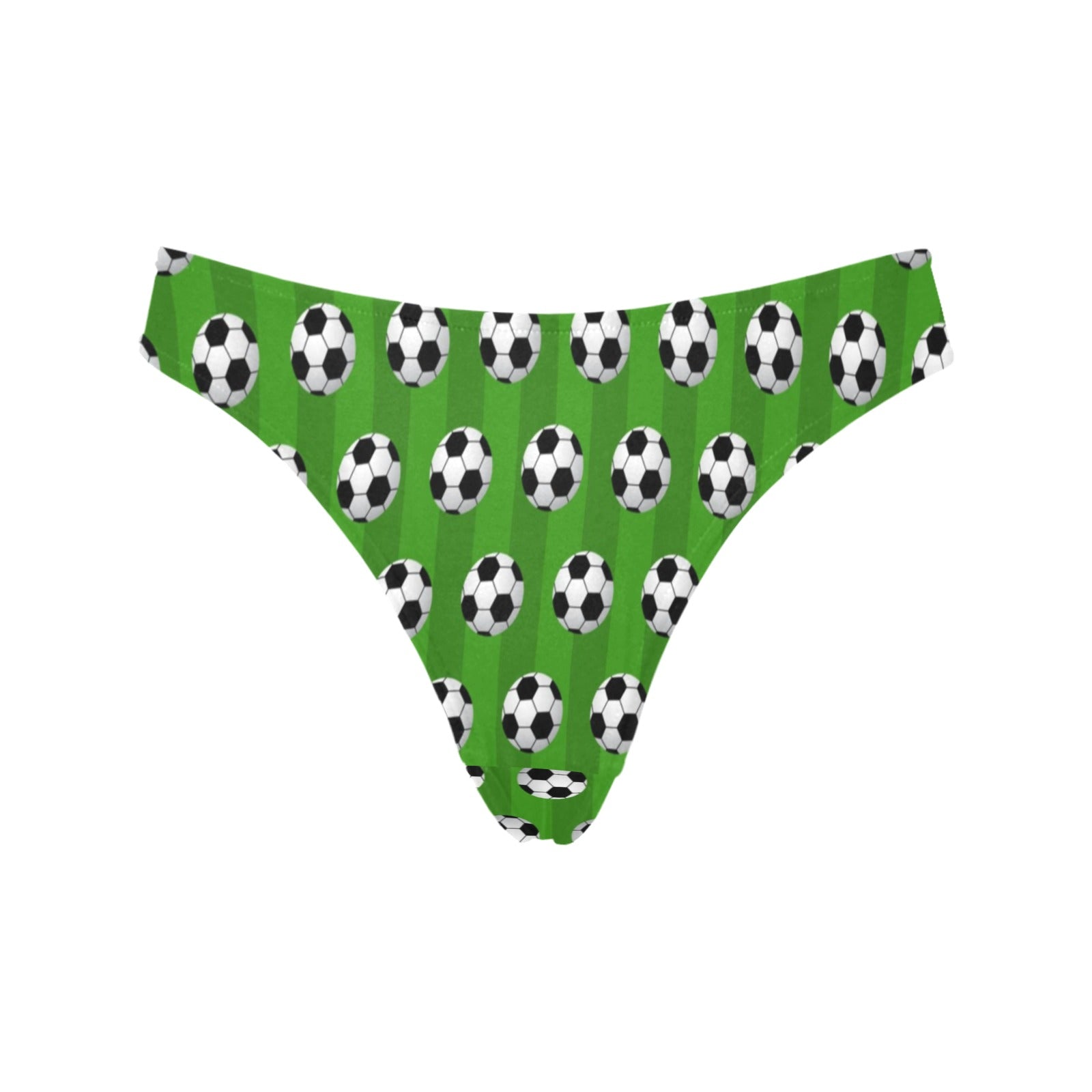 Soccer Ball Green Backgrpund Print Women's Thongsis custom-made-to-order and handcrafted to the highest quality standards.