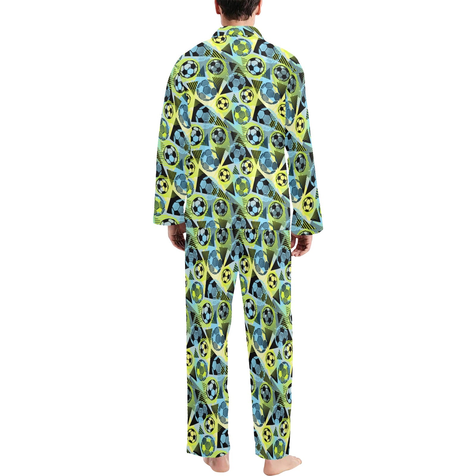 Soccer Ball Themed Print Design Men's Long Pajama Set custom-made-to-order and handcrafted to the highest quality standards.