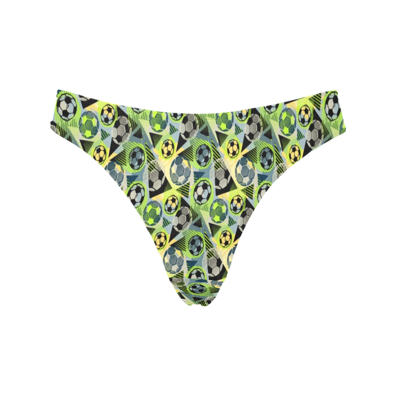 Soccer Ball Themed Print Pattern Women's Thongsis custom-made-to-order and handcrafted to the highest quality standards.