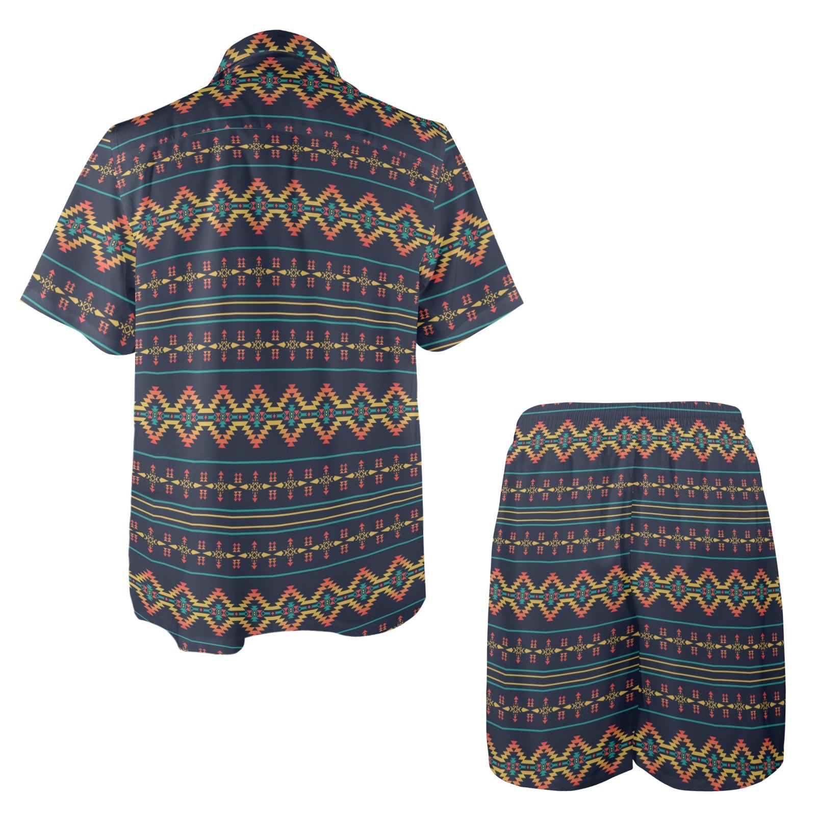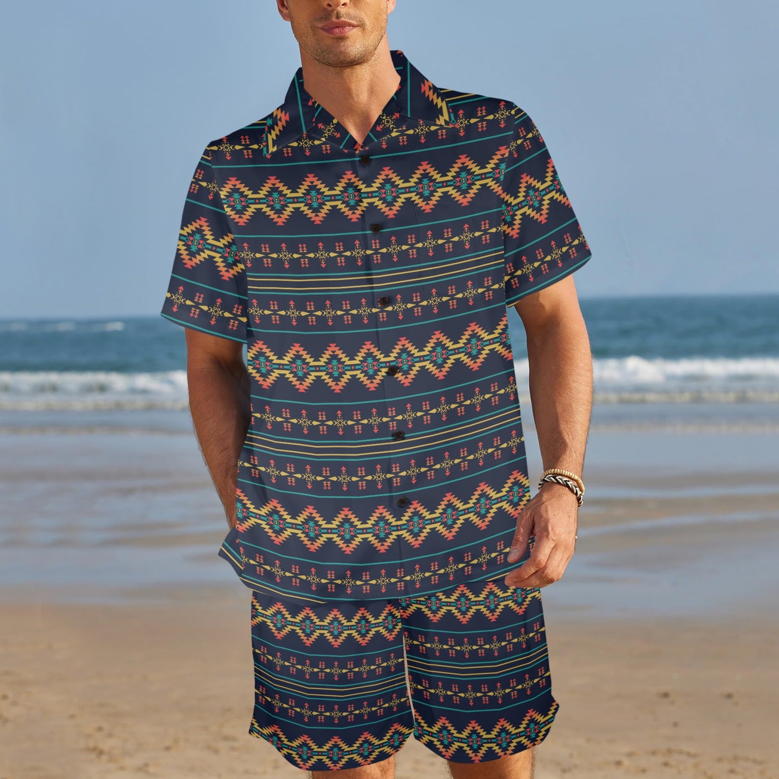 Southwest American Design Themed Print Men's Beach Shirt and Shorts Set