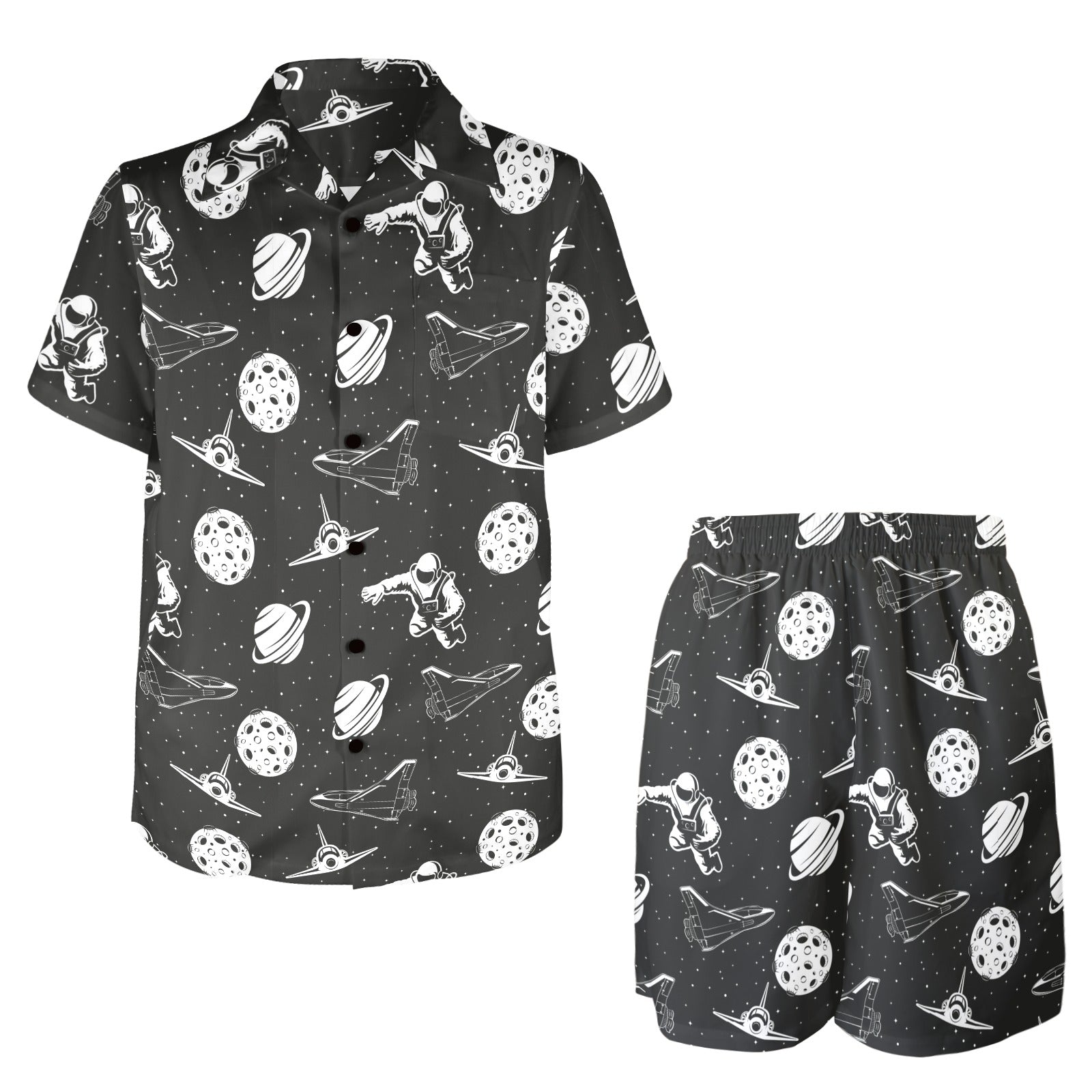 Space Astronauts Print Men's Beach Shirt and Shorts Set