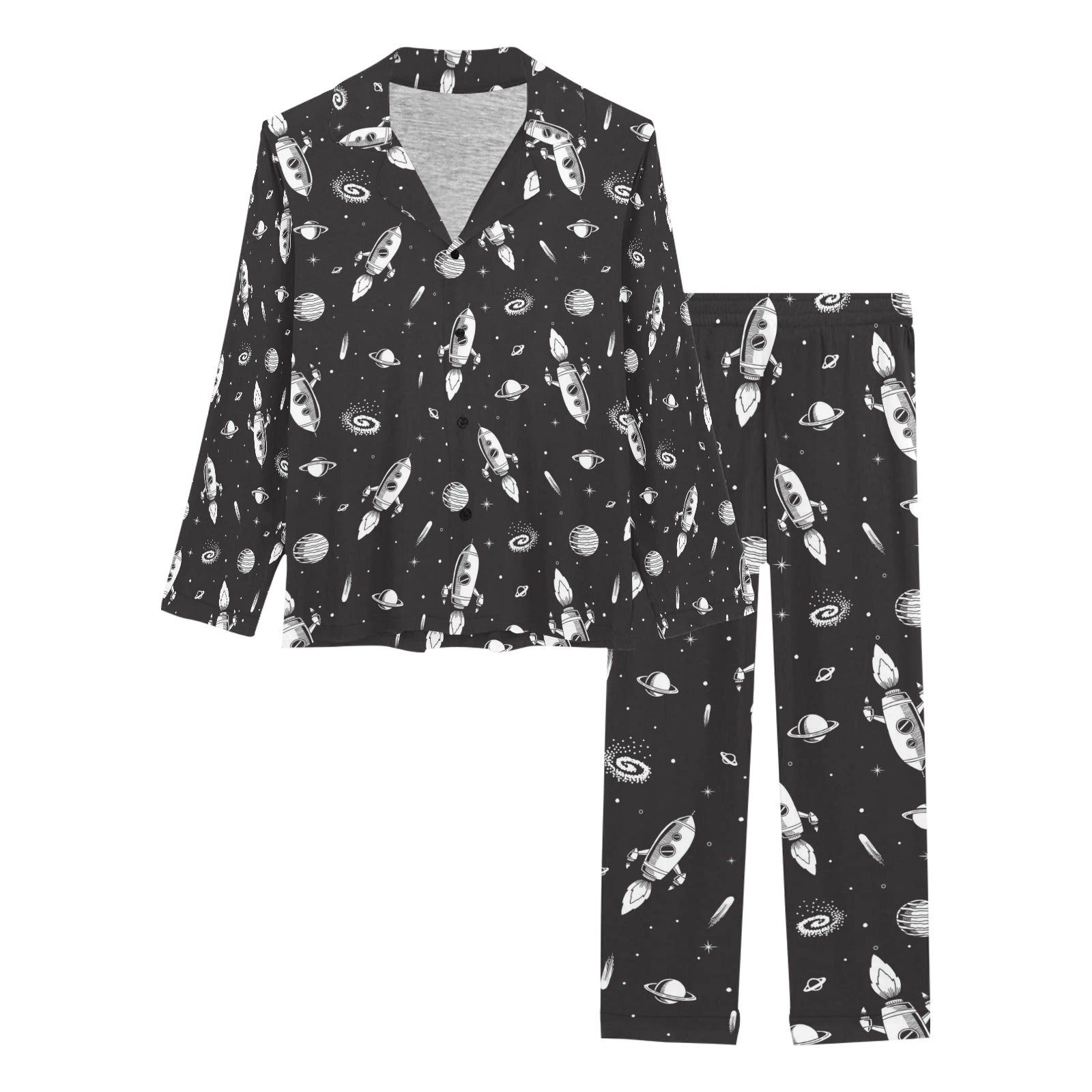 Space Rocket Print Design LKS303 Women's Long Pajama Set Made to Order Item. It is hand-cut and sewn just for your order! This process starts as soon as your order is placed and may have a processing time of 5-9 business days before it ships.