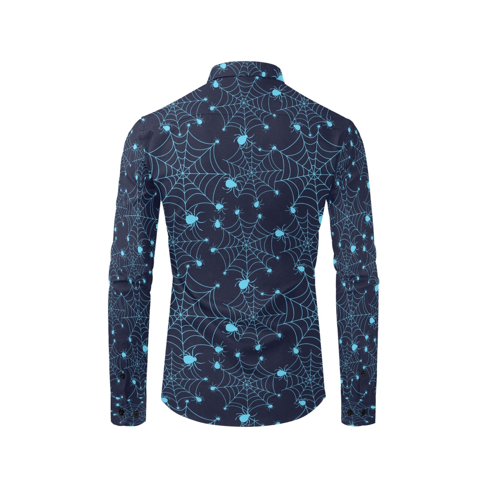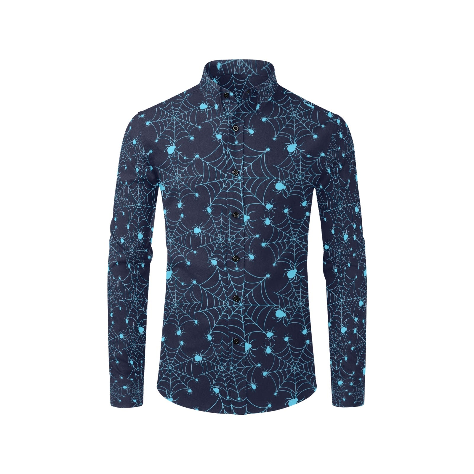 Spider Web Blue Print Design LKS304 Men's Long Sleeve Dress Shirt