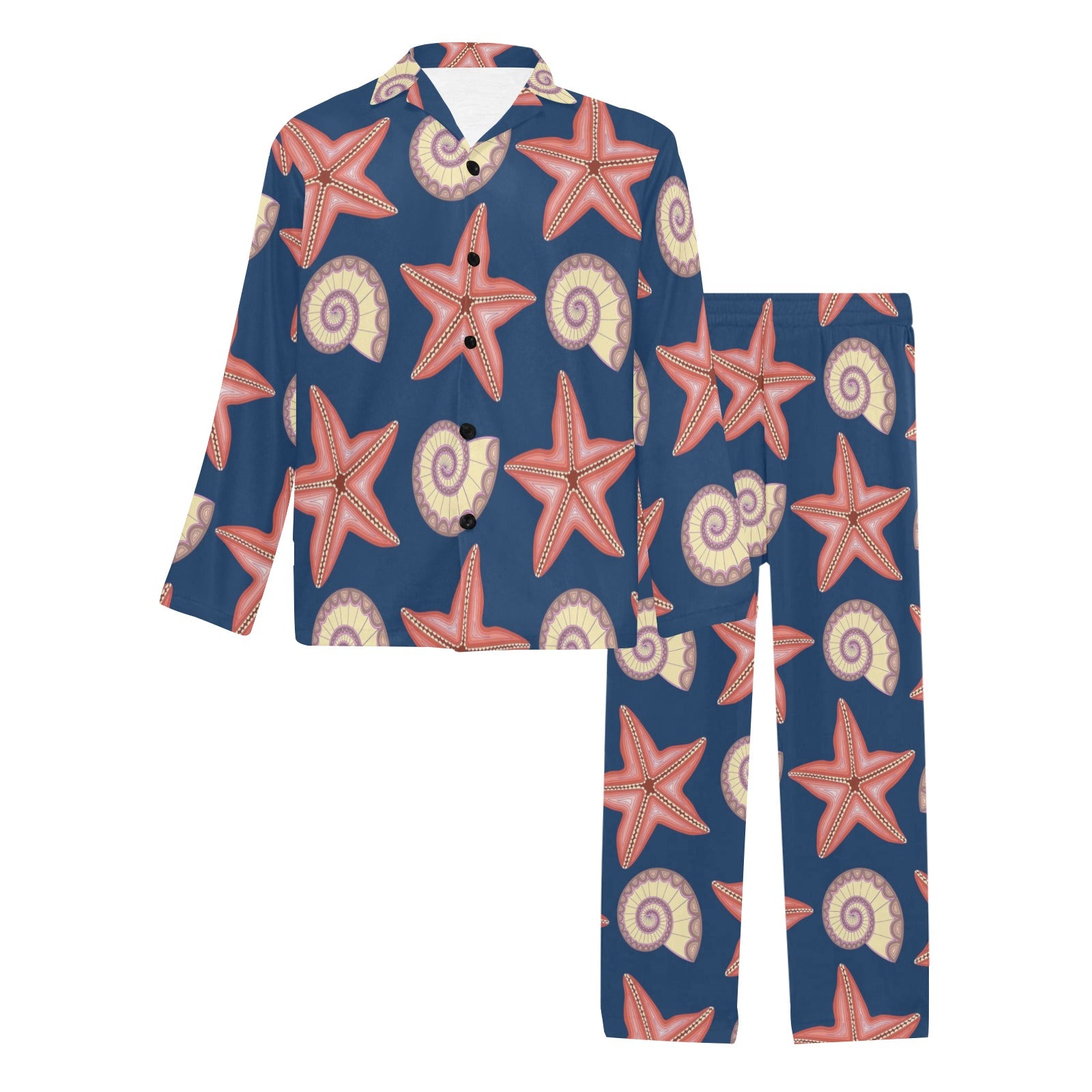 Starfish Pattern Print Design 03 Men's Long Pajama Set custom-made-to-order and handcrafted to the highest quality standards.