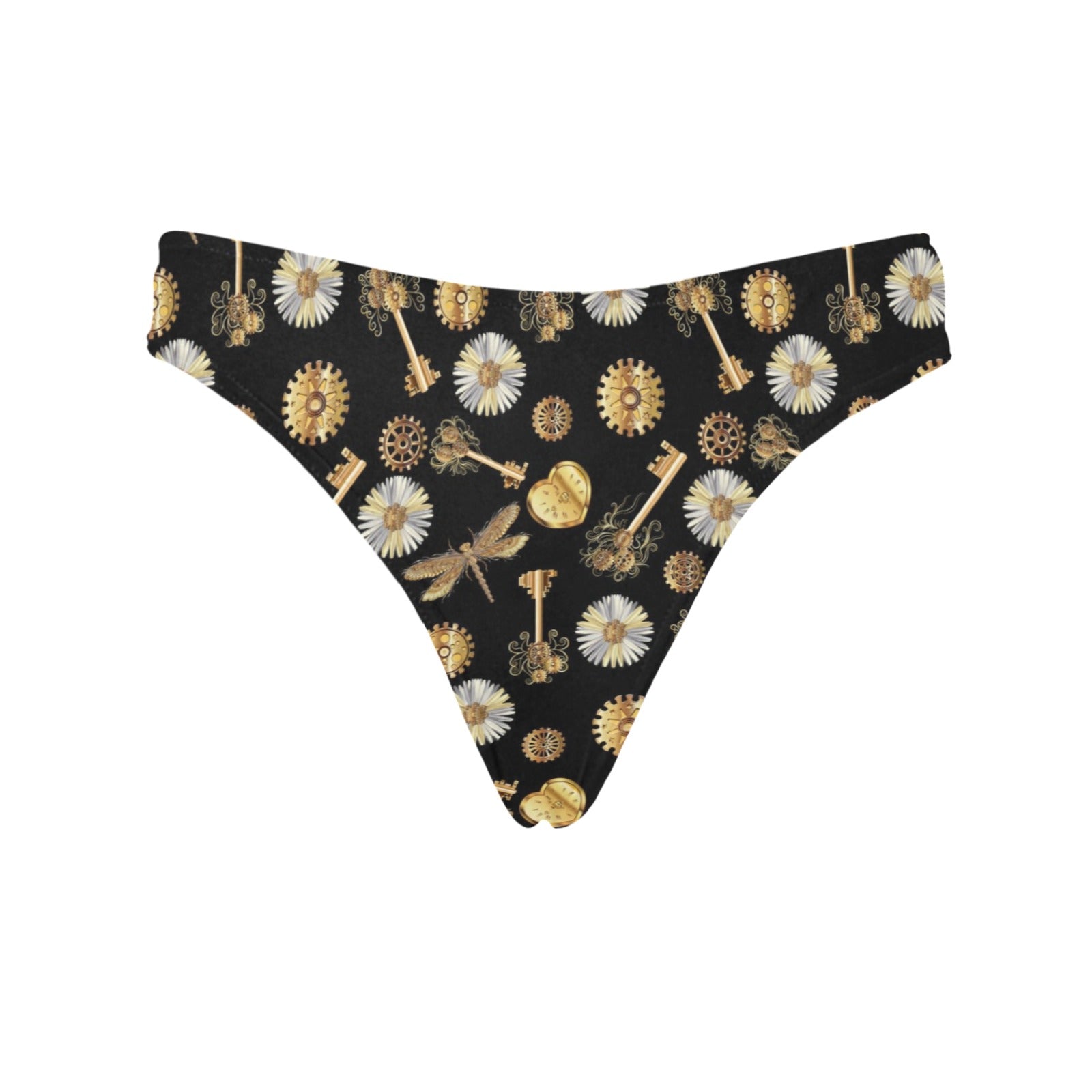 Steampunk Dragonfly Design Themed Print Women's Thongsis custom-made-to-order and handcrafted to the highest quality standards.