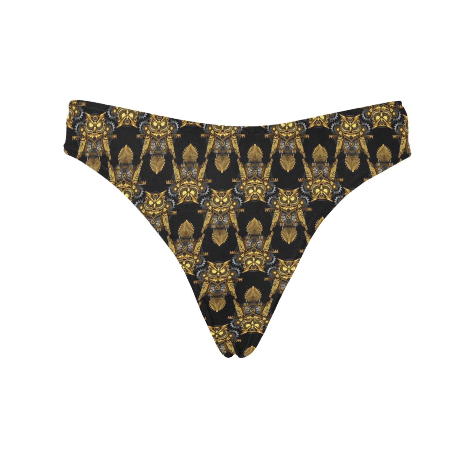 Steampunk Gold Owl Design Themed Print Women's Thongsis custom-made-to-order and handcrafted to the highest quality standards.