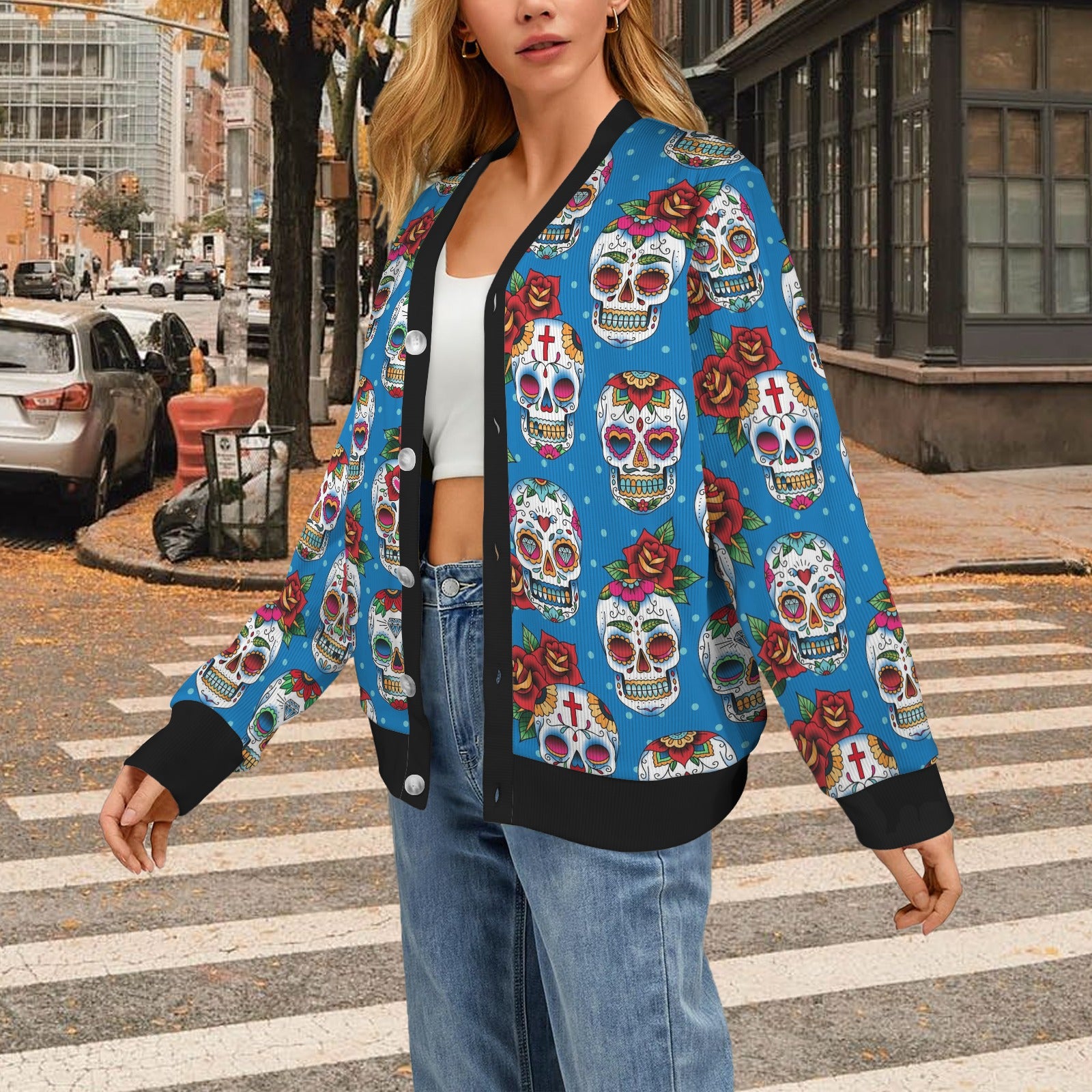 Sugar Skull Rose Pattern Women's Cardigan made-to-order and handcrafted to the highest quality standards.