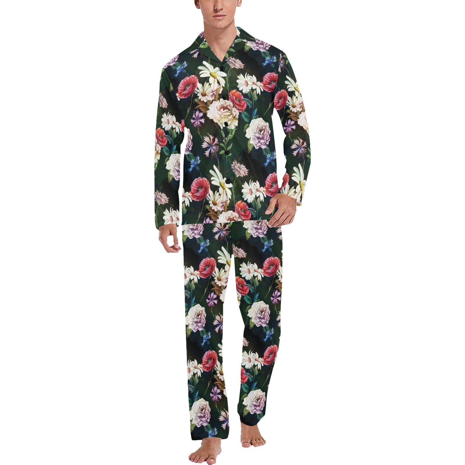 Summer Floral Print Design LKS303 Men's Long Pajama Set custom-made-to-order and handcrafted to the highest quality standards.