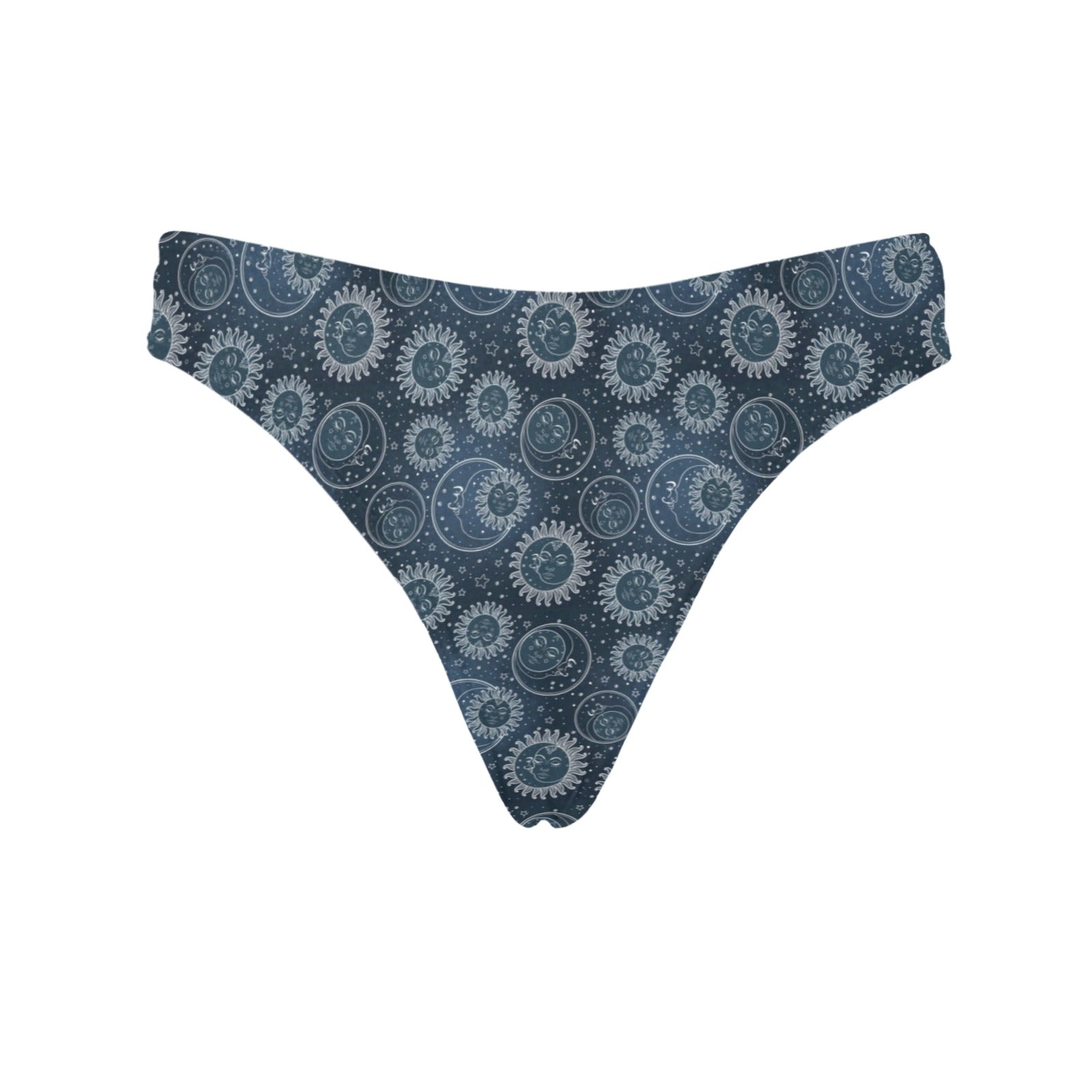 Sun Moon Tattoo Design Themed Print Women's Thongsis custom-made-to-order and handcrafted to the highest quality standards.