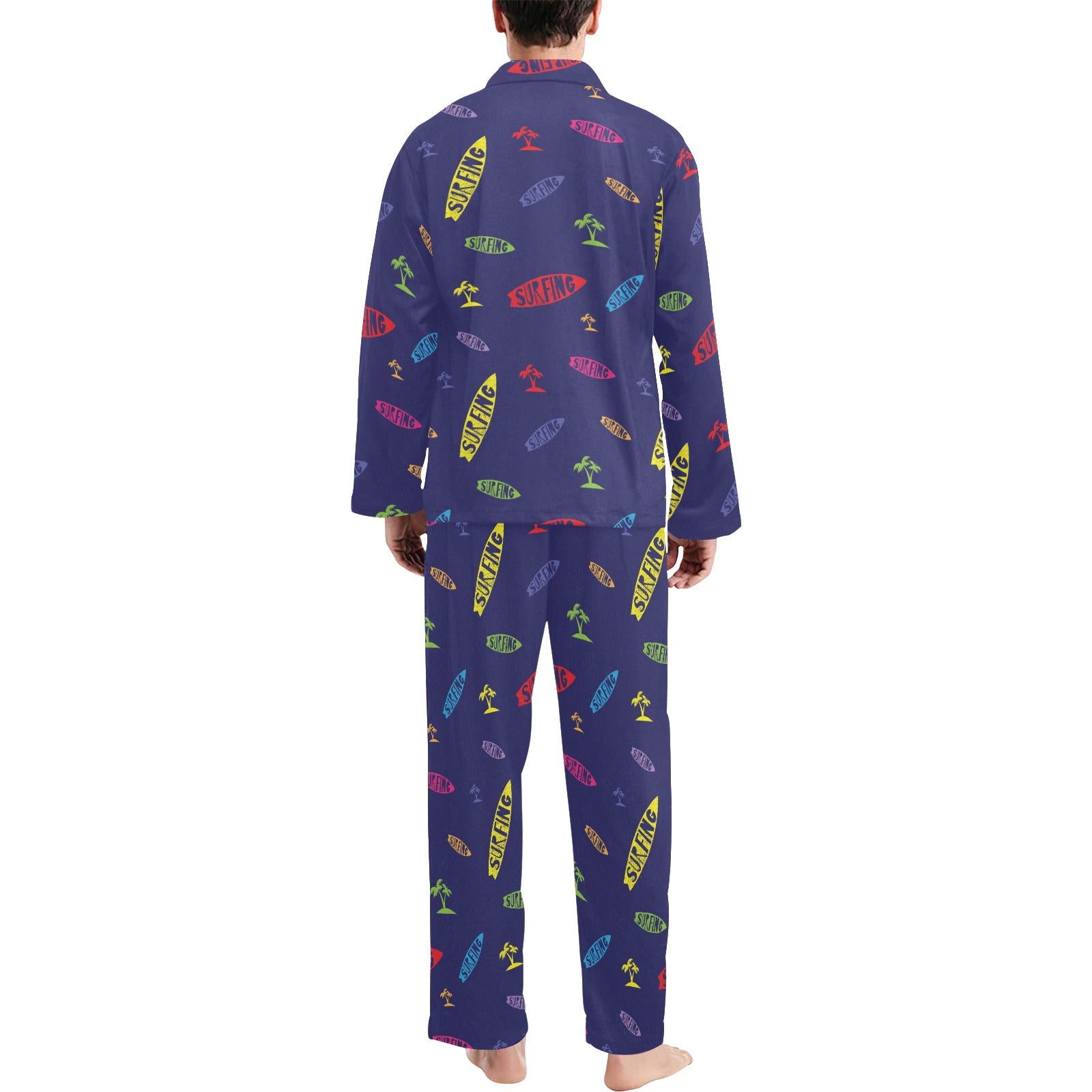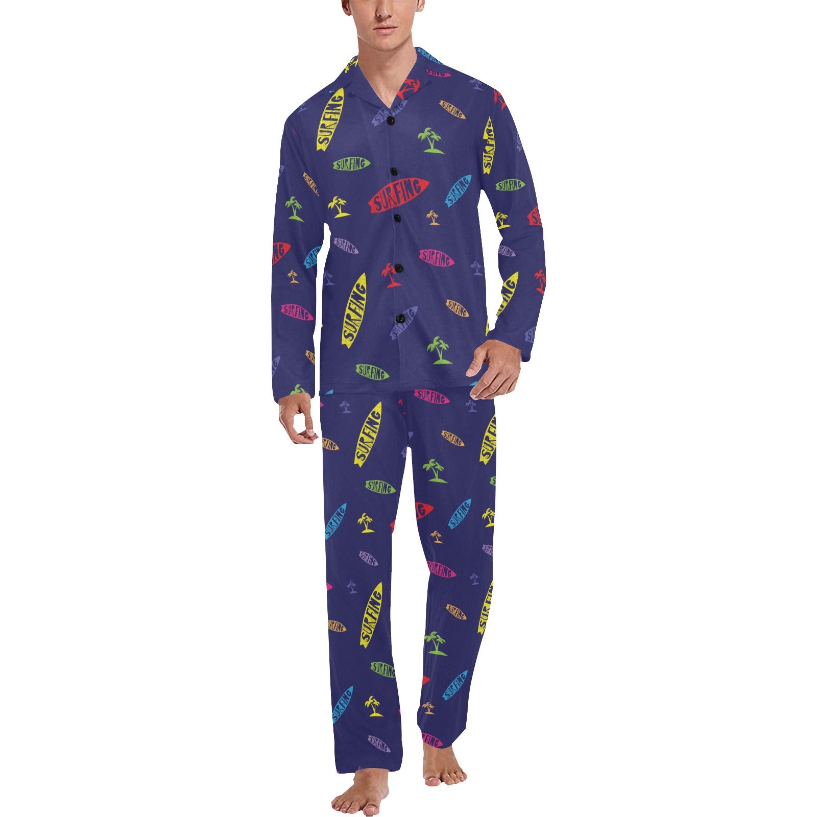 Surfboard Print Design LKS305 Men's Long Pajama Set custom-made-to-order and handcrafted to the highest quality standards.