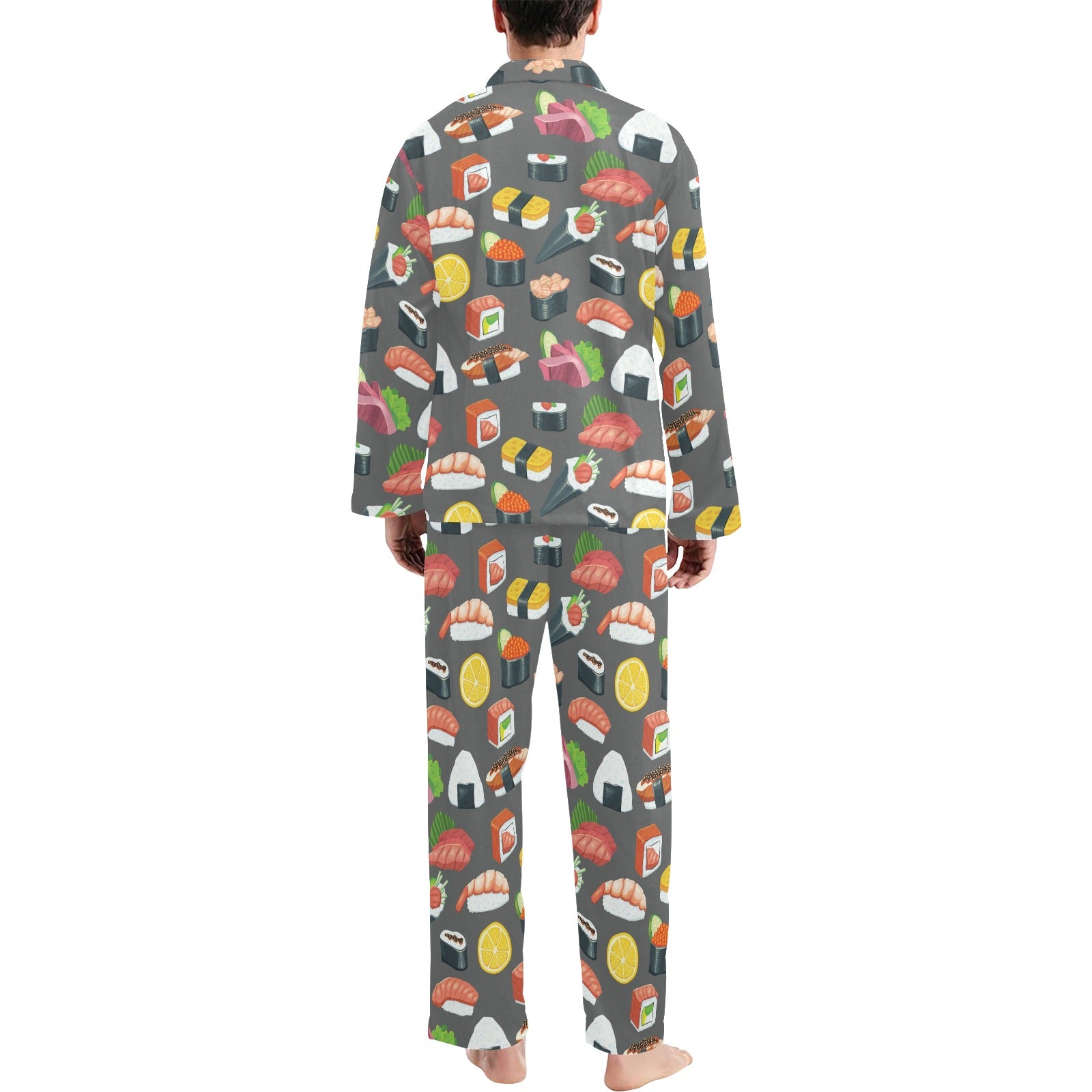 Sushi Print Design LKS302 Men's Long Pajama Set custom-made-to-order and handcrafted to the highest quality standards.