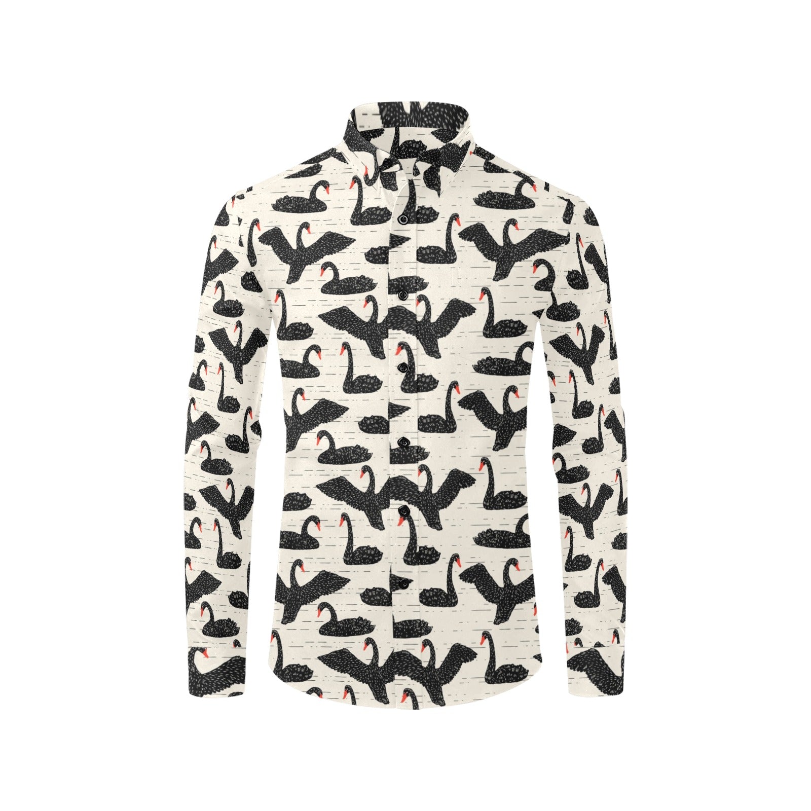Swan Print Design LKS402 Men's Long Sleeve Dress Shirt