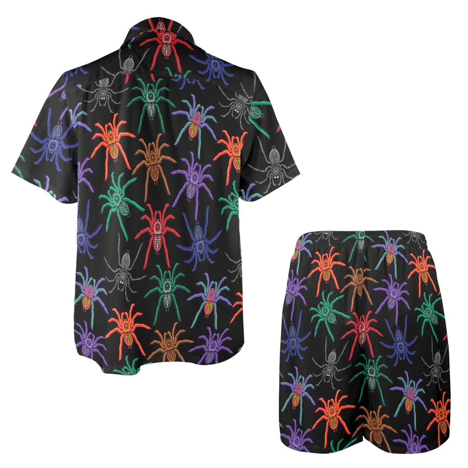 Tarantula Neon Color Pattern Print Design 03 Men's Beach Shirt and Shorts Set