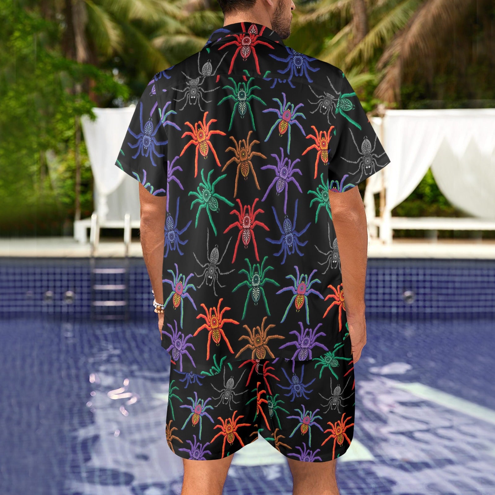 Tarantula Neon Color Pattern Print Design 03 Men's Beach Shirt and Shorts Set. It is hand-cut and sewn just for your order! This process starts as soon as your order is placed and may have a processing time of 5-9 business days before it ships.