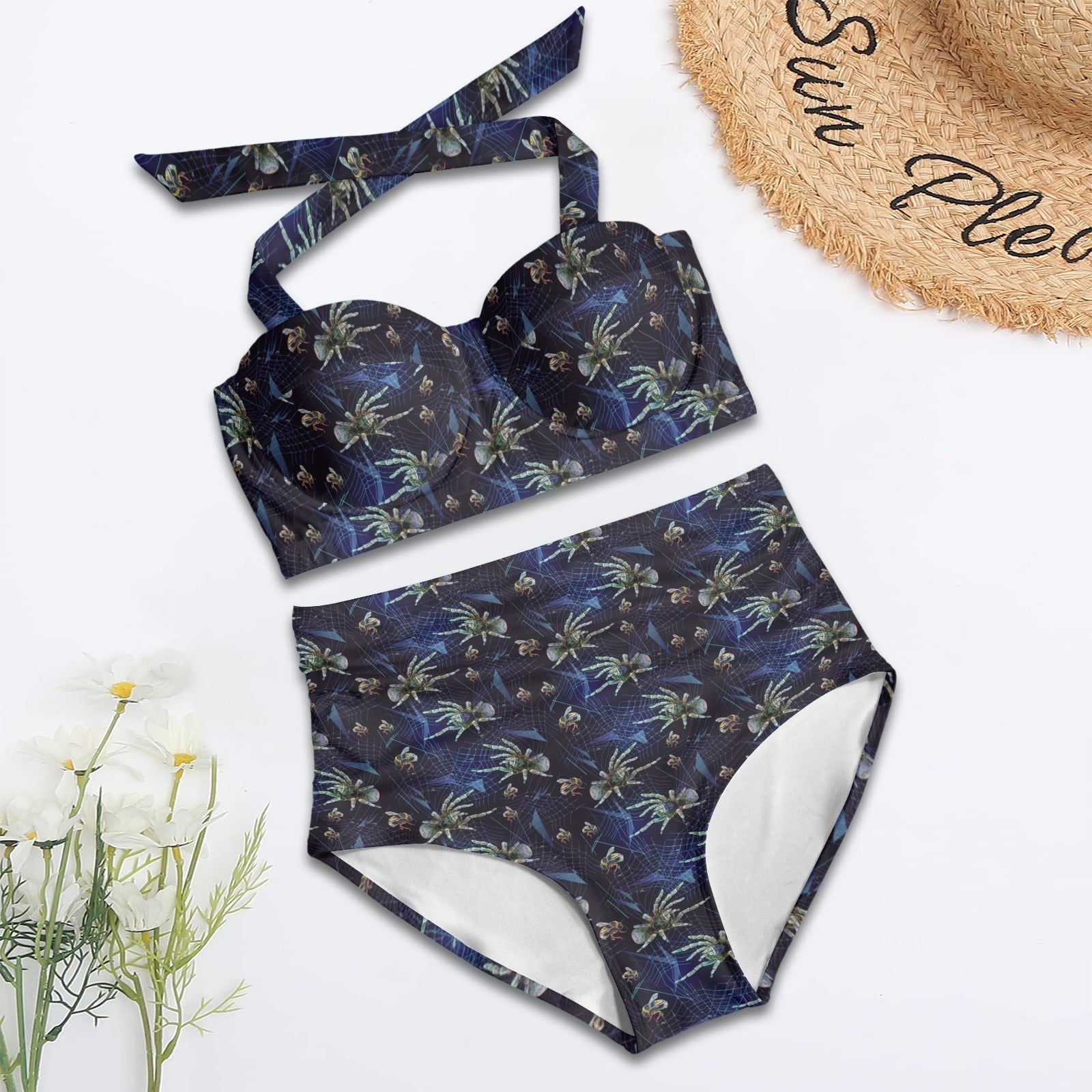 Tarantula Print Design LKS401 Halter Neck Bikini Swimsuit