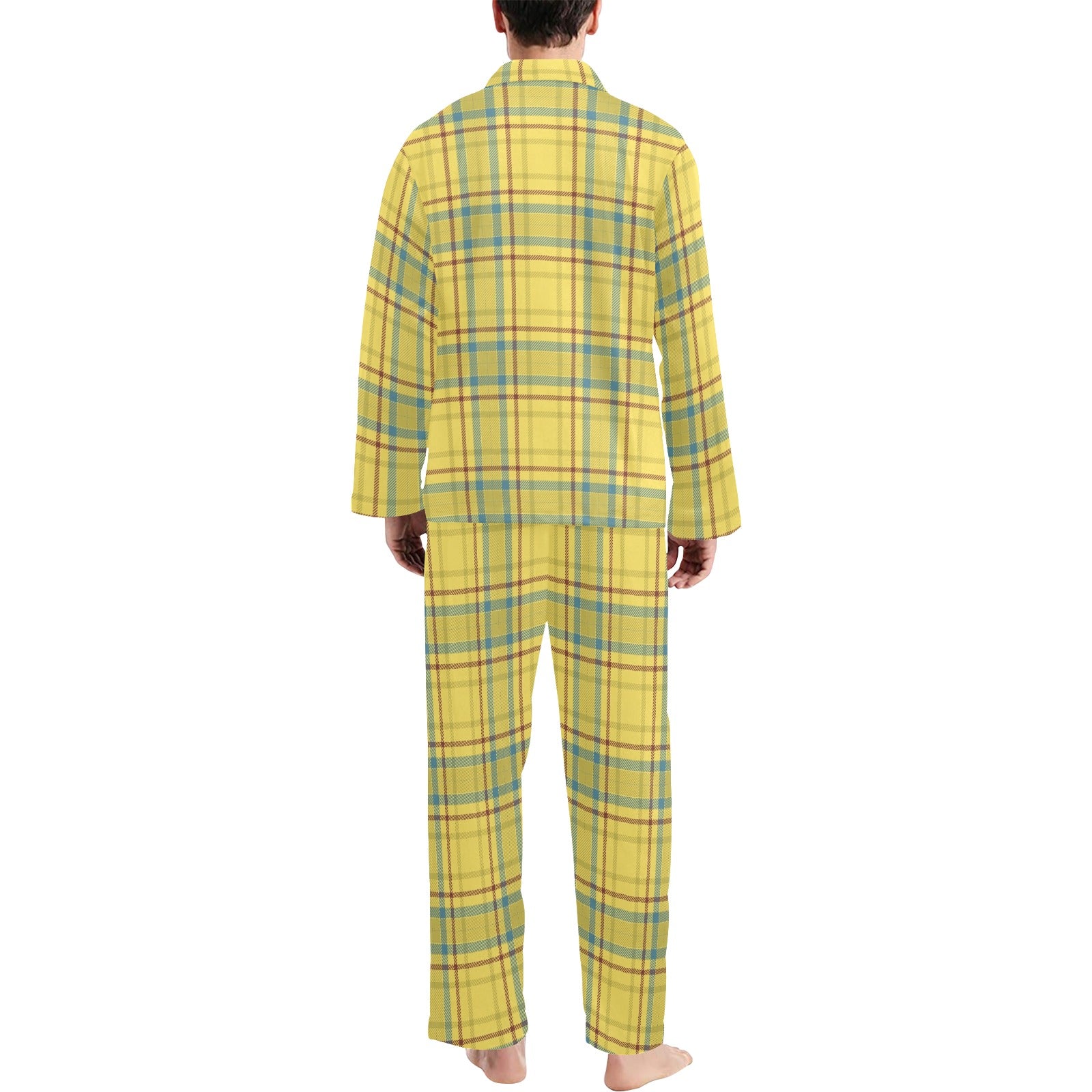 Tartan Yellow Print Design LKS301 Men's Long Pajama Set