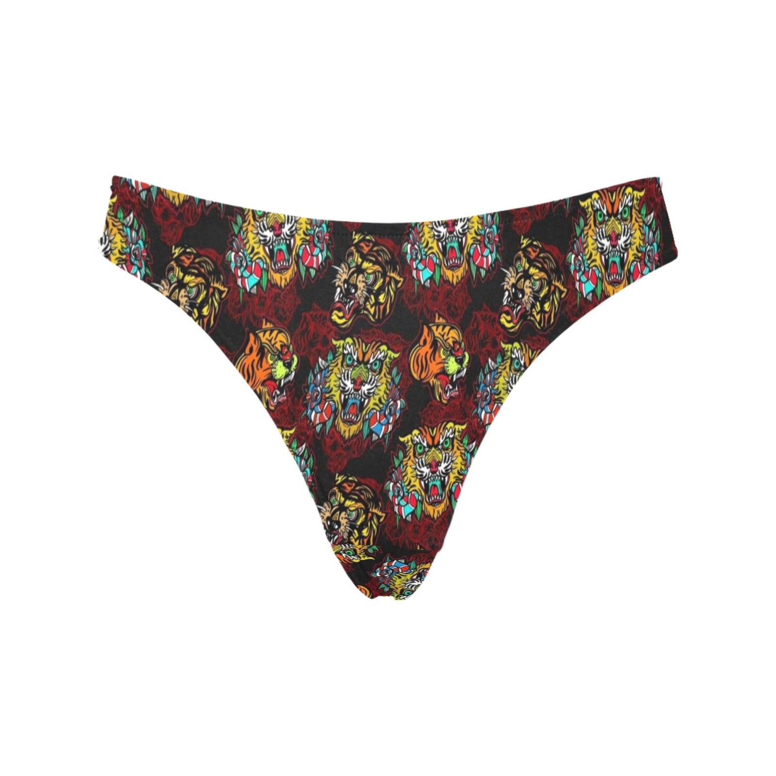 Tattoo Tiger Colorful Design Women's Thongsis custom-made-to-order and handcrafted to the highest quality standards.