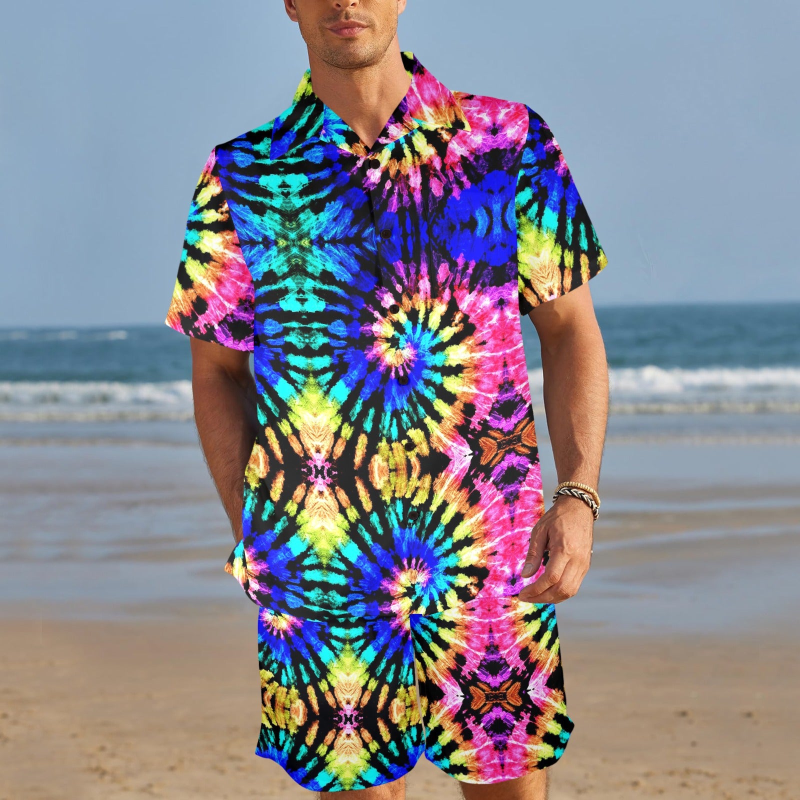 Tie Dye Rainbow Design Print Men's Beach Shirt and Shorts Set