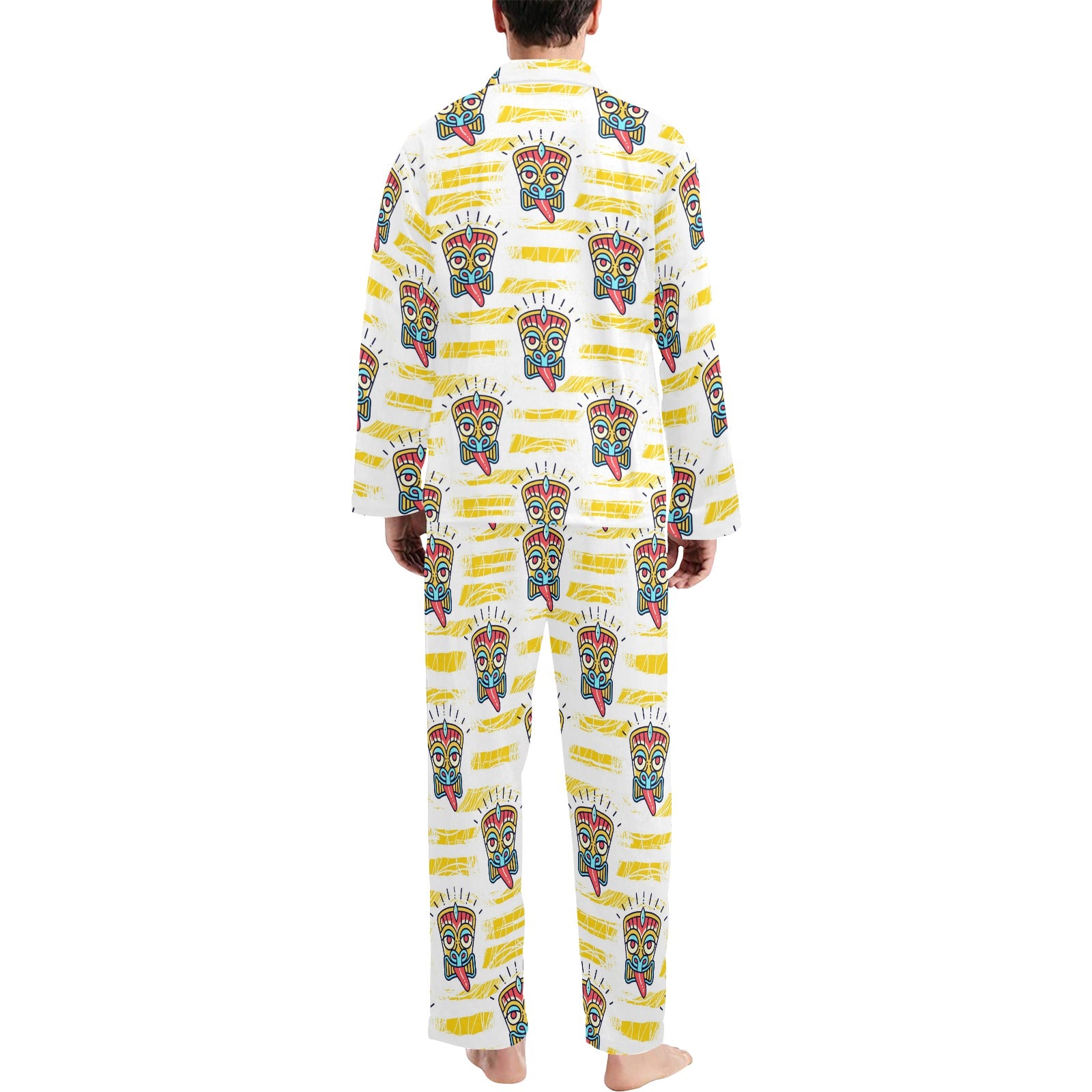 Tiki Smile Mask Print Pattern Men's Long Pajama Set Made to Order Item. It is hand-cut and sewn just for your order! This process starts as soon as your order is placed and may have a processing time of 5-9 business days before it ships.