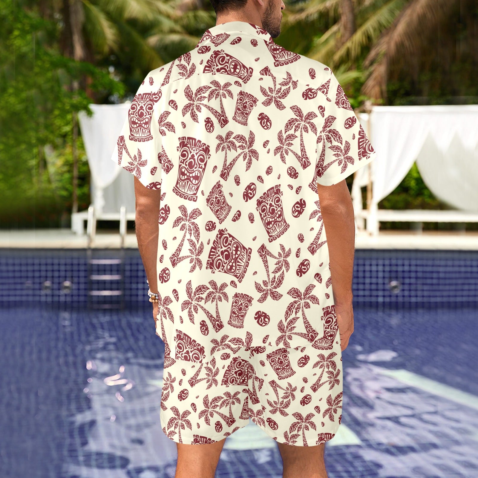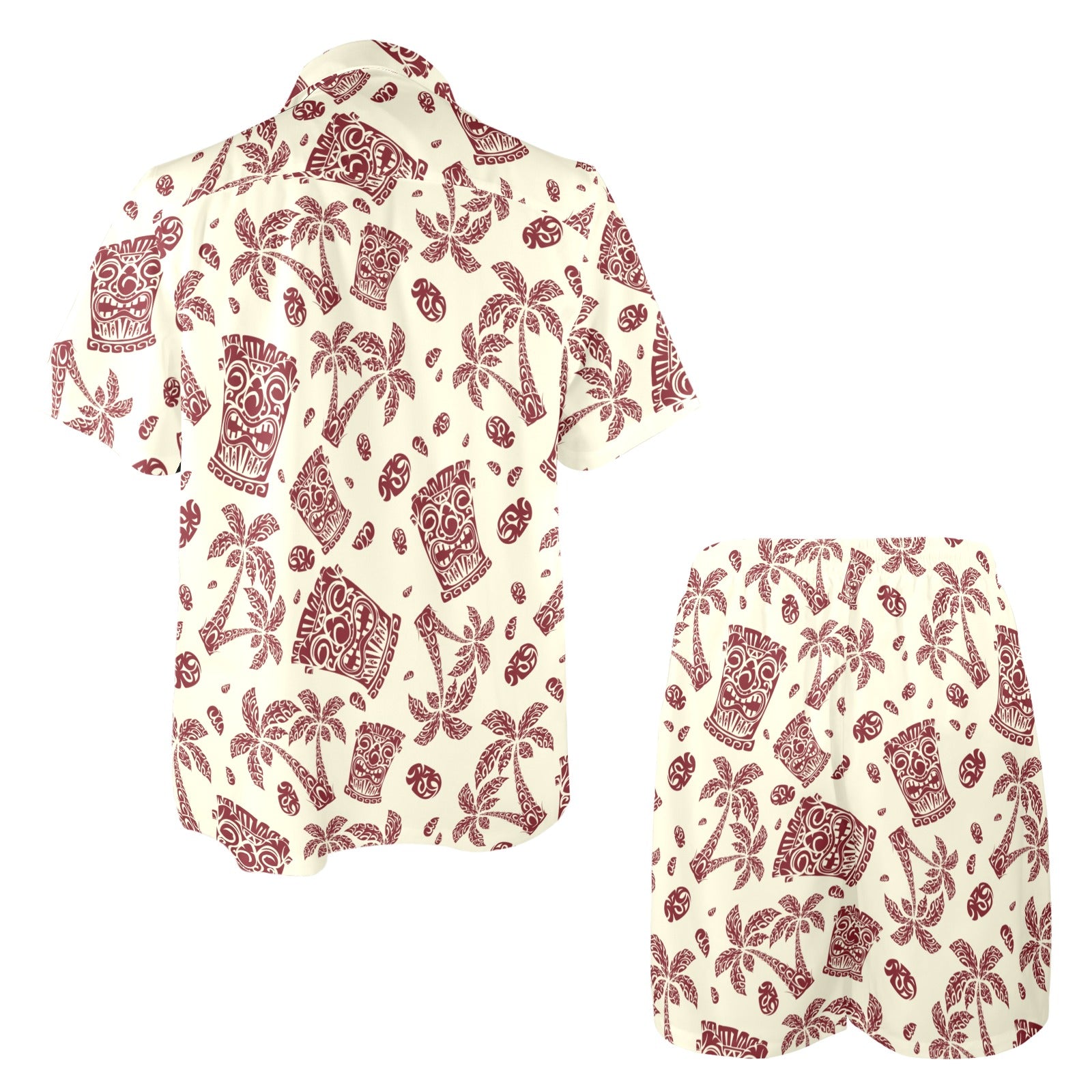 Tiki Tribal Mask Palm Tree Men's Beach Shirt and Shorts Set