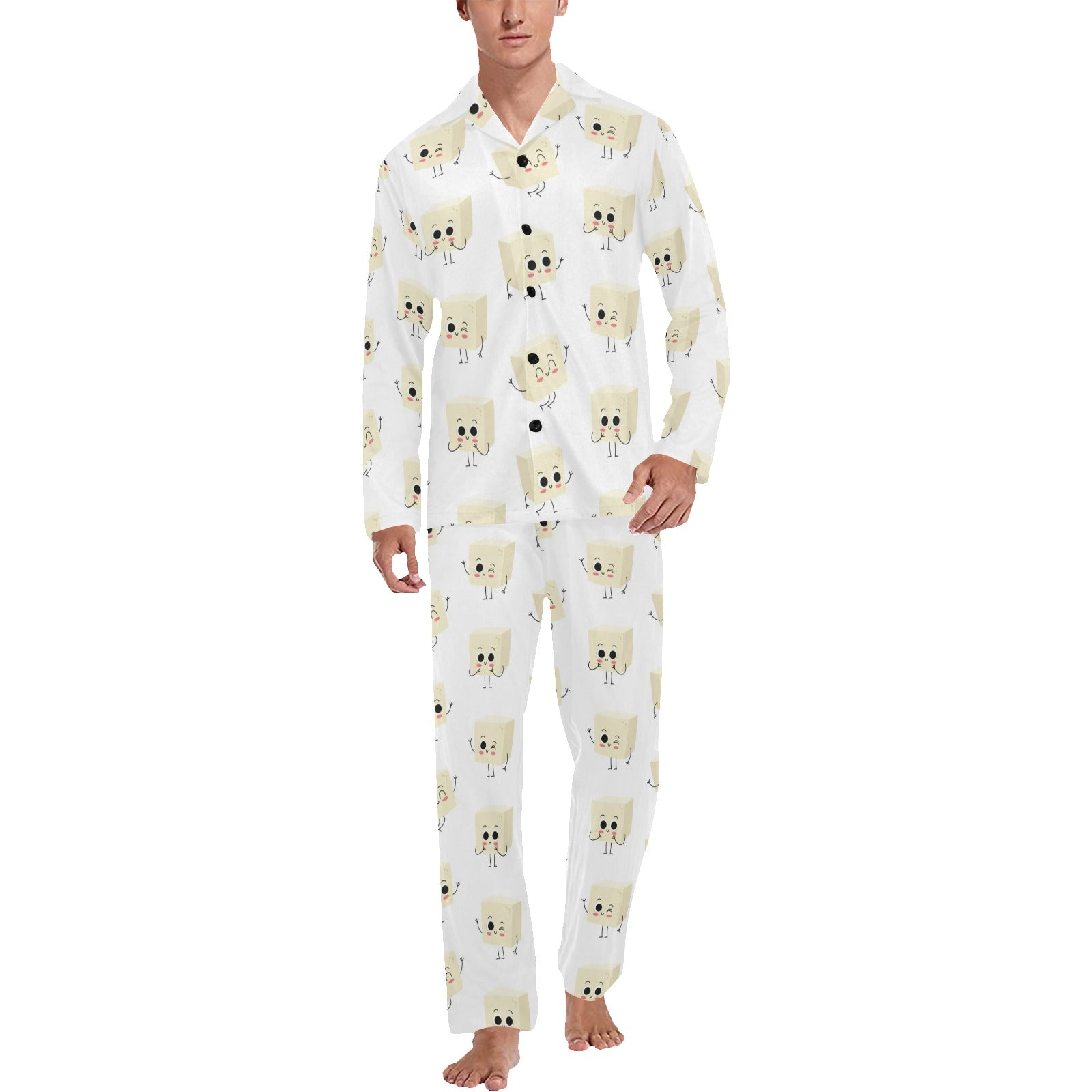 Tofu Print Design LKS301 Men's Long Pajama Set custom-made-to-order and handcrafted to the highest quality standards.