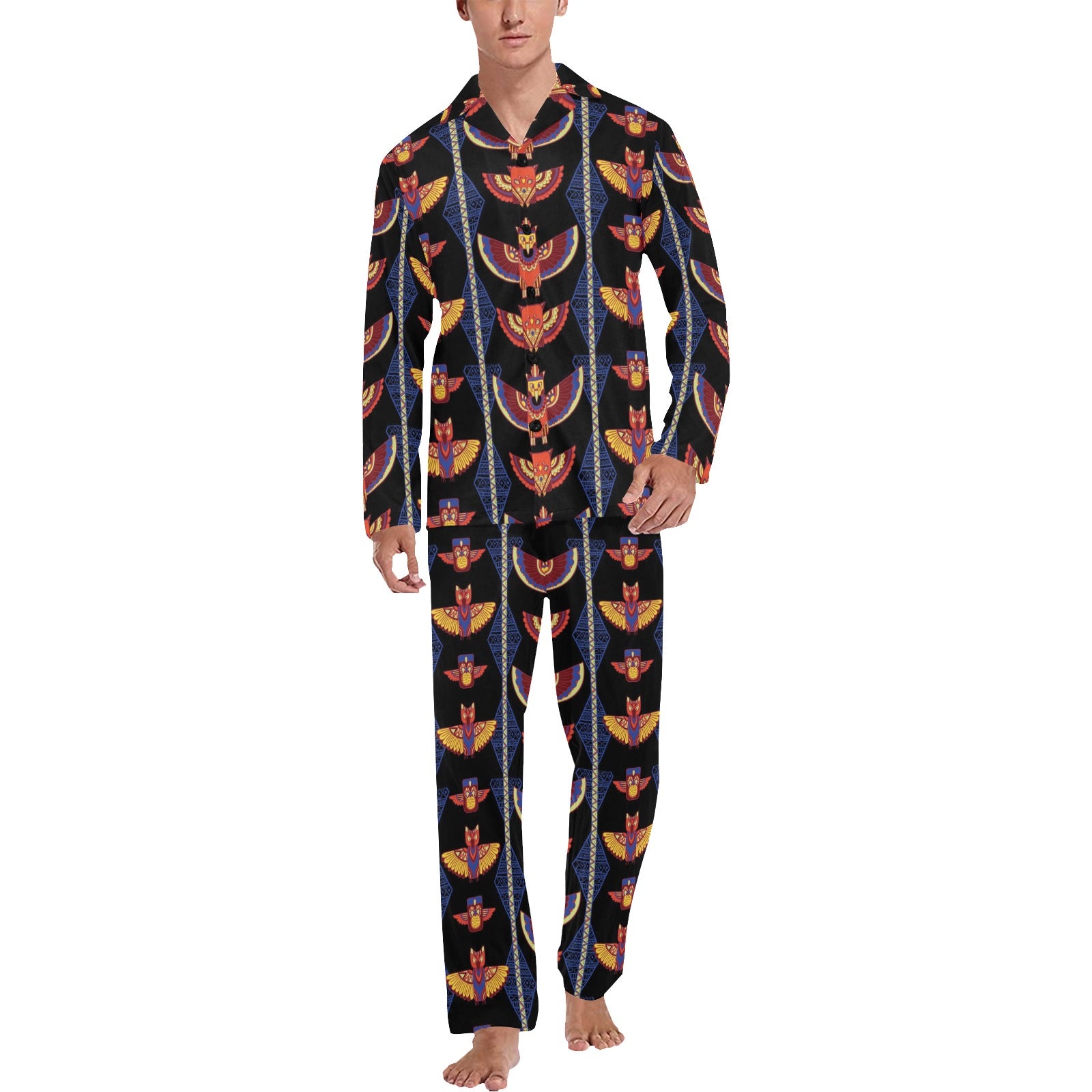 Totem Print Design LKS301 Men's Long Pajama Set custom-made-to-order and handcrafted to the highest quality standards.