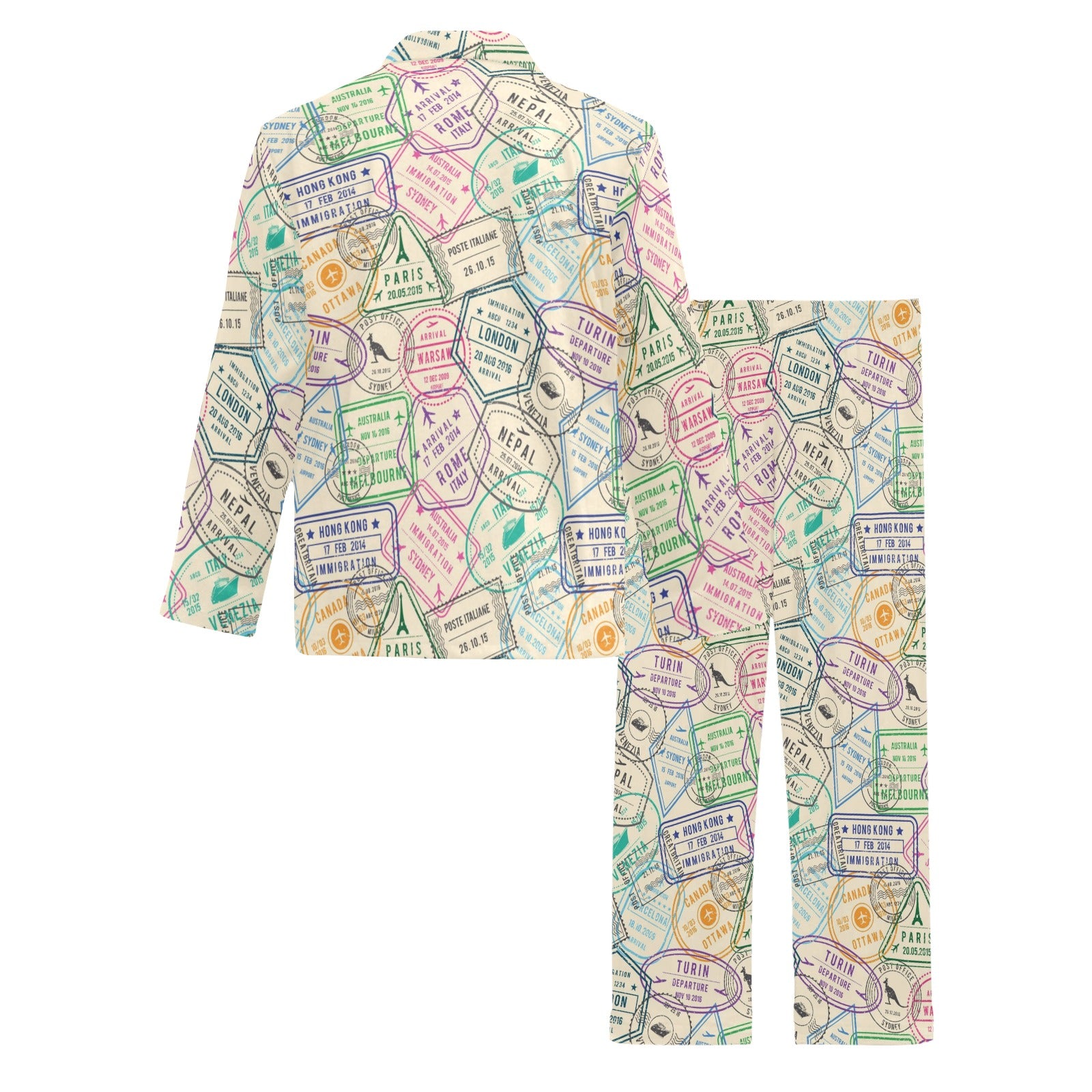 Travel Stamp Print Design LKS303 Men's Long Pajama Set custom-made-to-order and handcrafted to the highest quality standards.