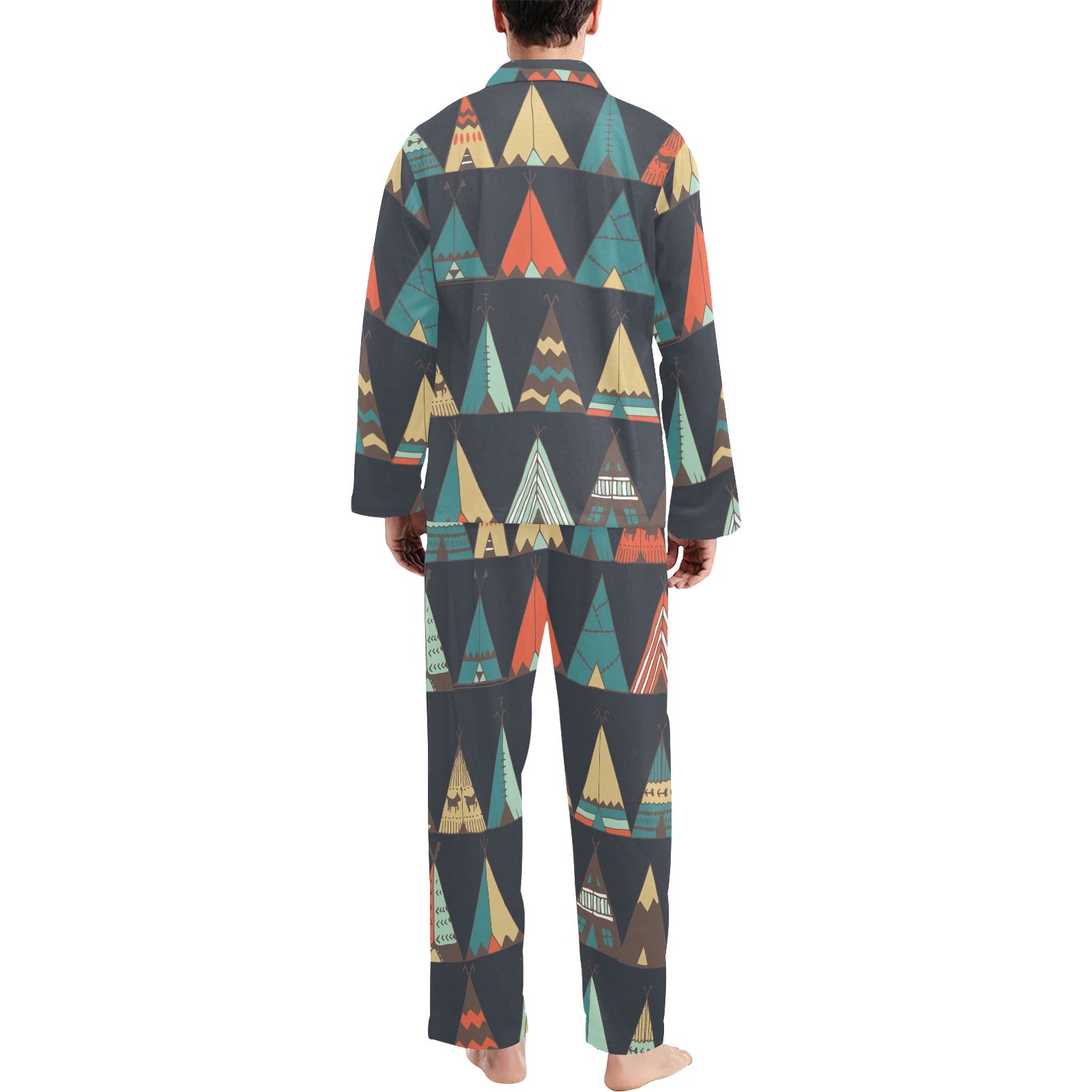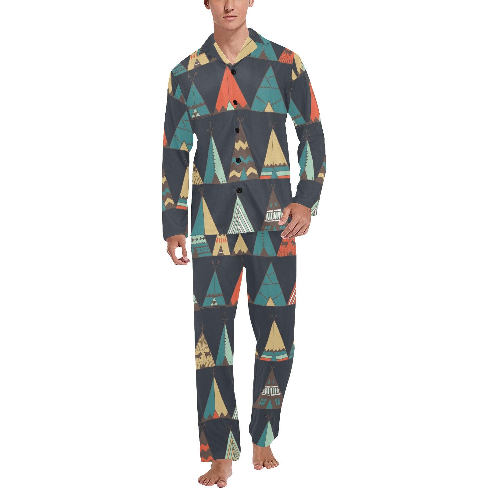 Tribal native american tent Aztec Men's Long Pajama Set Made to Order Item. It is hand-cut and sewn just for your order! This process starts as soon as your order is placed and may have a processing time of 5-9 business days before it ships.