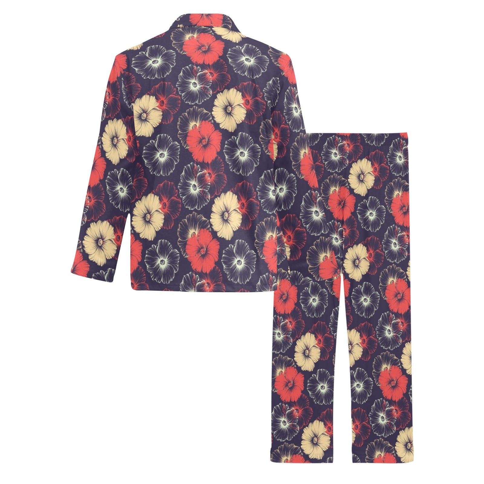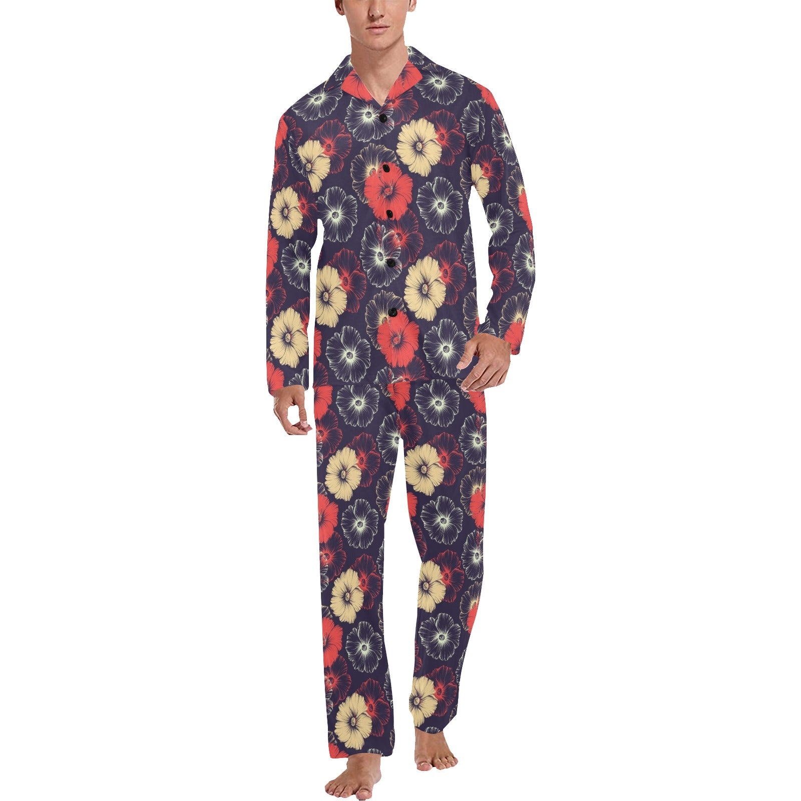 Tropical Flower Print Design LKS302 Men's Long Pajama Set custom-made-to-order and handcrafted to the highest quality standards.