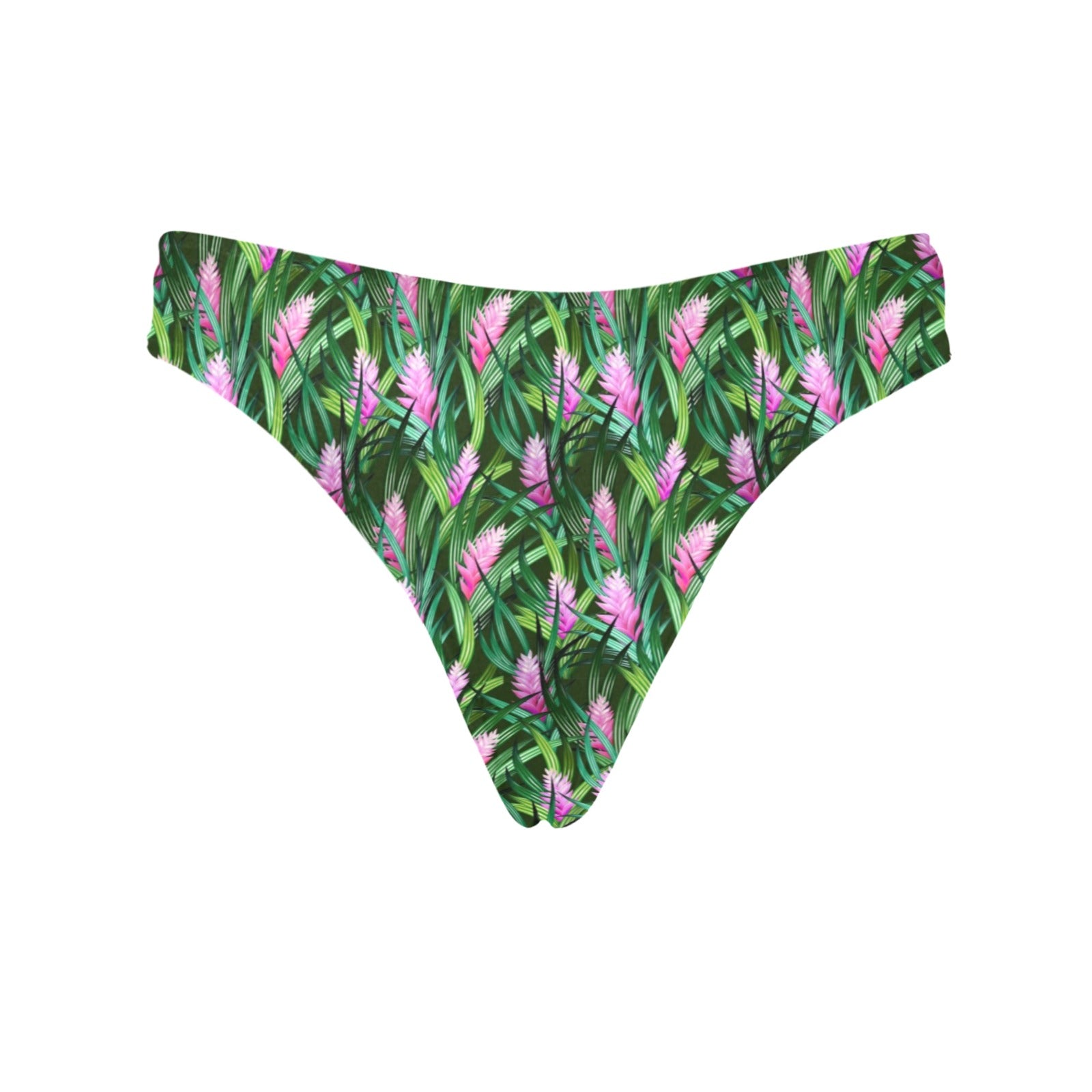 Tropical Folower Pink Heliconia Print Women's Thongsis custom-made-to-order and handcrafted to the highest quality standards.