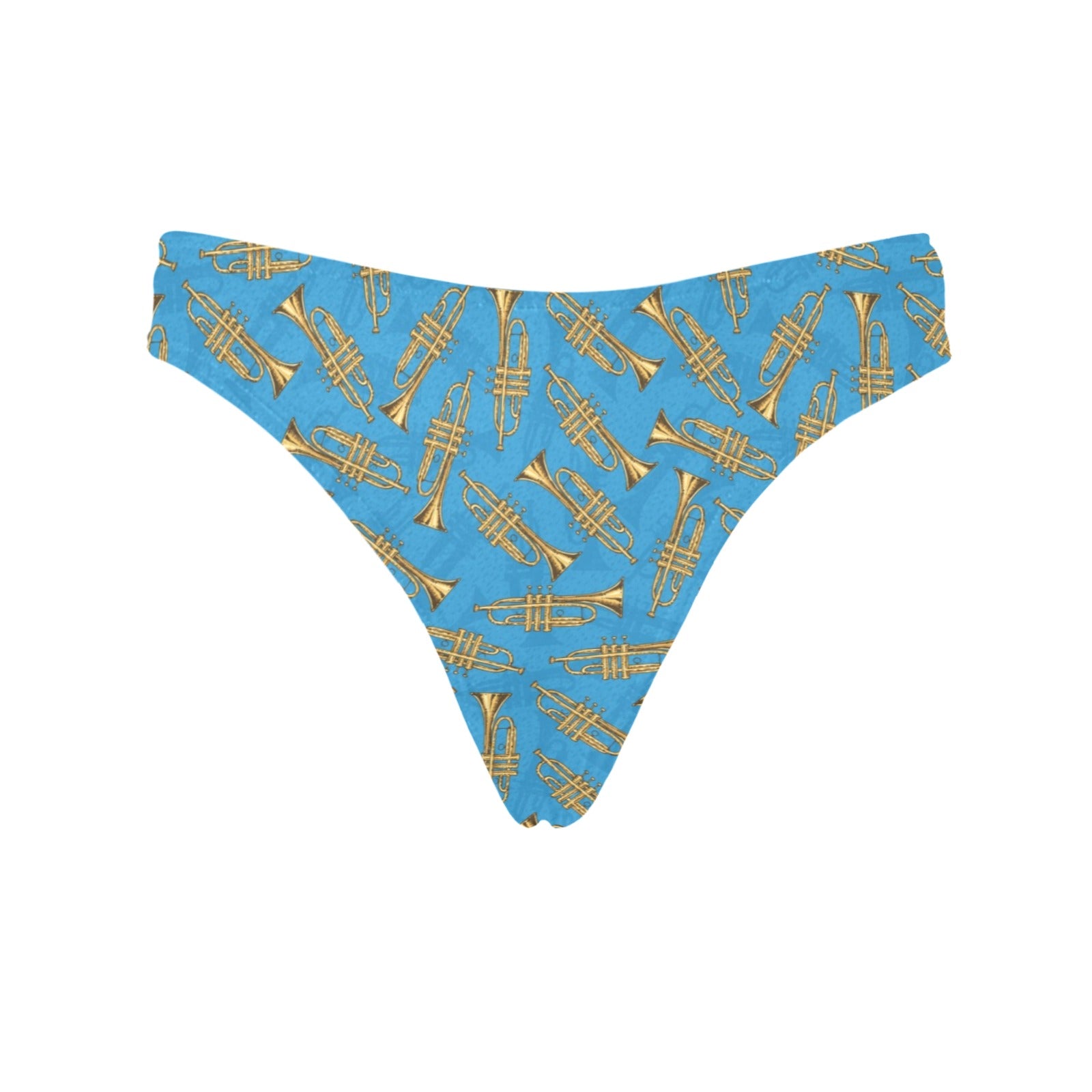 Trumpet Golden Pattern Themed Print Women's Thongsis custom-made-to-order and handcrafted to the highest quality standards.
