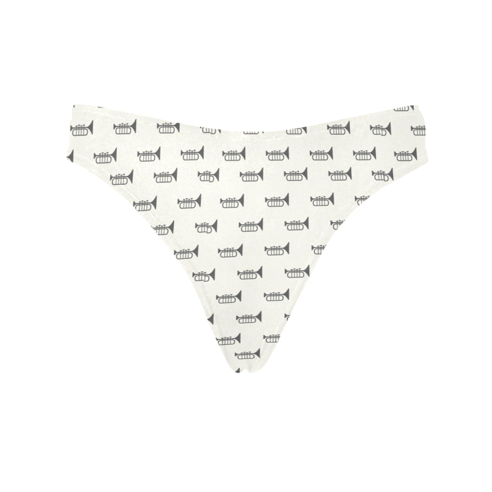 Trumpet Pattern Themed Print Women's Thongsis custom-made-to-order and handcrafted to the highest quality standards.