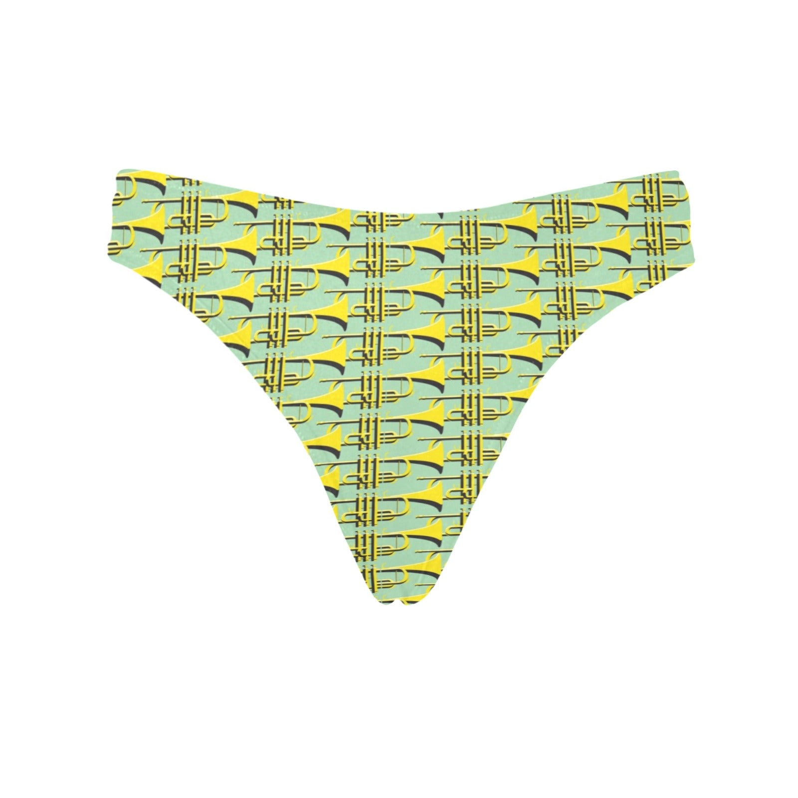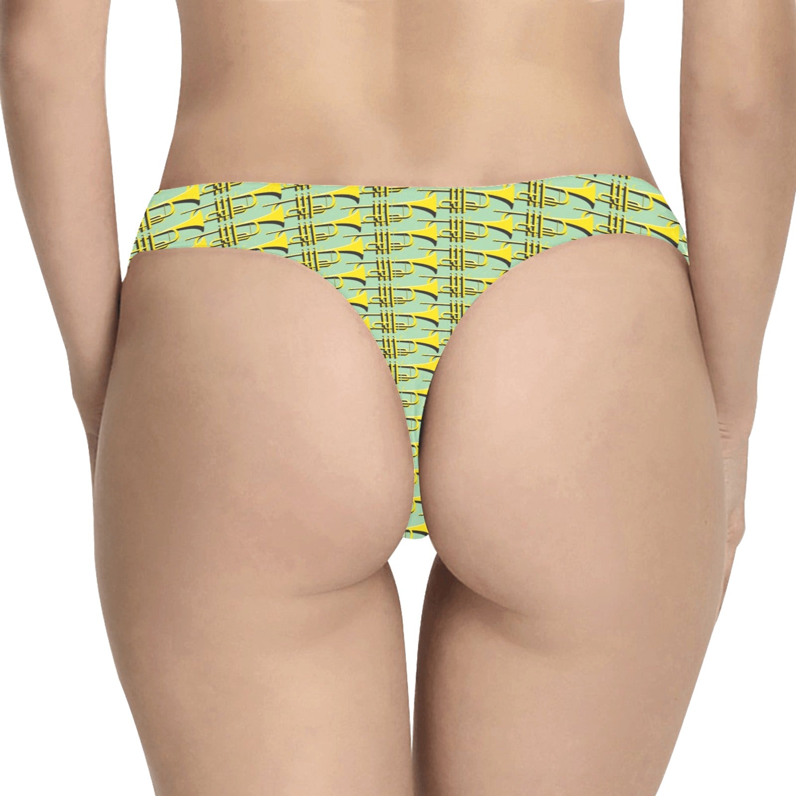 Trumpet Vintage Design Print Women's Thongsis custom-made-to-order and handcrafted to the highest quality standards.