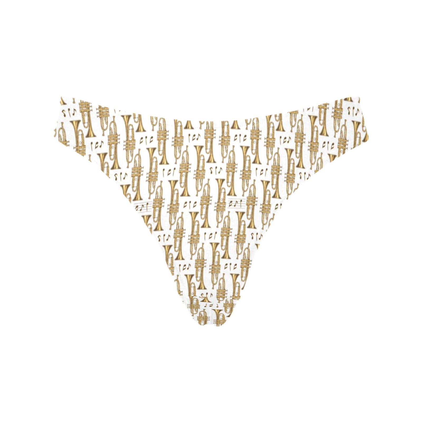 Trumpet with Music Note Print Women's Thongsis custom-made-to-order and handcrafted to the highest quality standards.