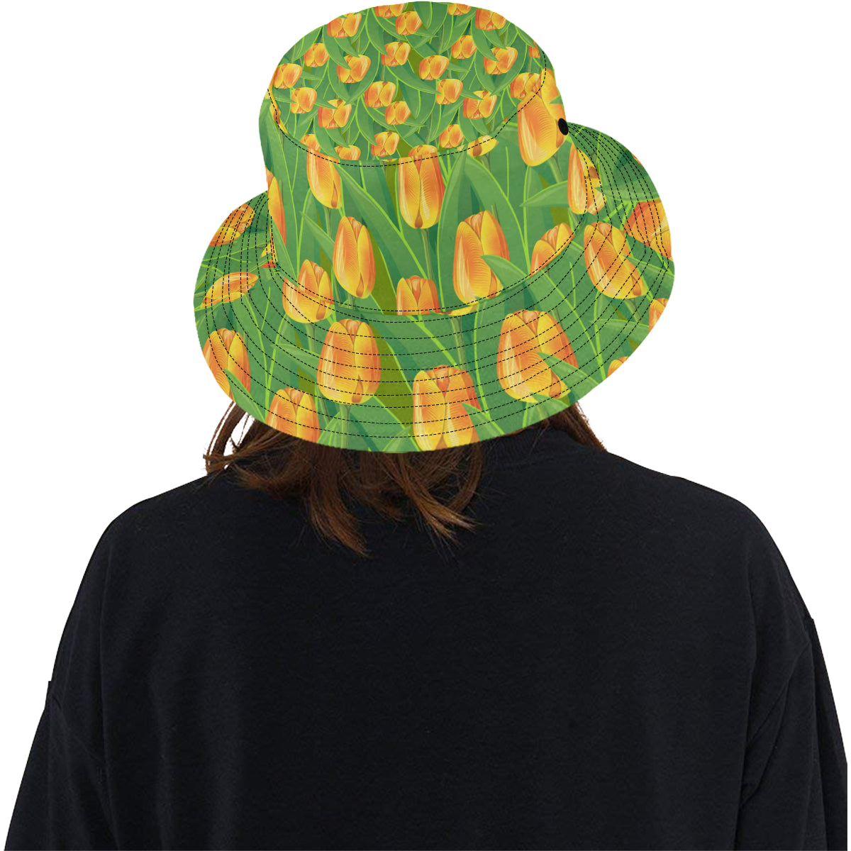 Tulip Orange Pattern Print Design TP07 Unisex Bucket Hat