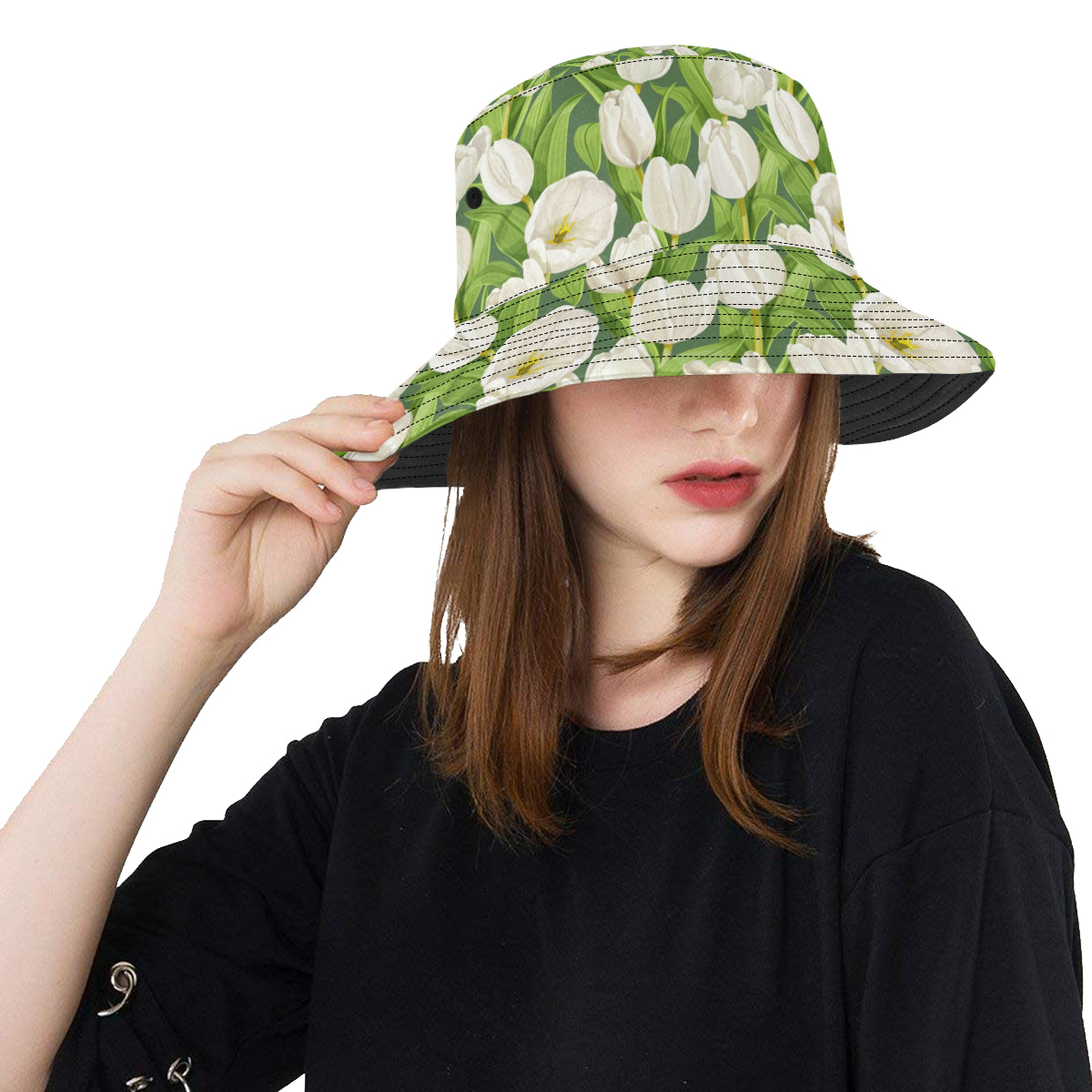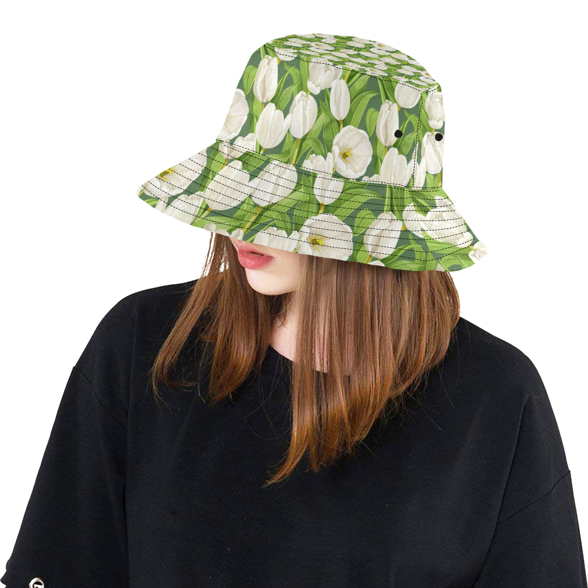 This Tulip White Pattern Print Design TP05 Unisex Bucket Hat Made to Order Item. It is hand-cut and sewn just for your order! This process starts as soon as your order is placed and may have a processing time of 5-9 business days before it ships.