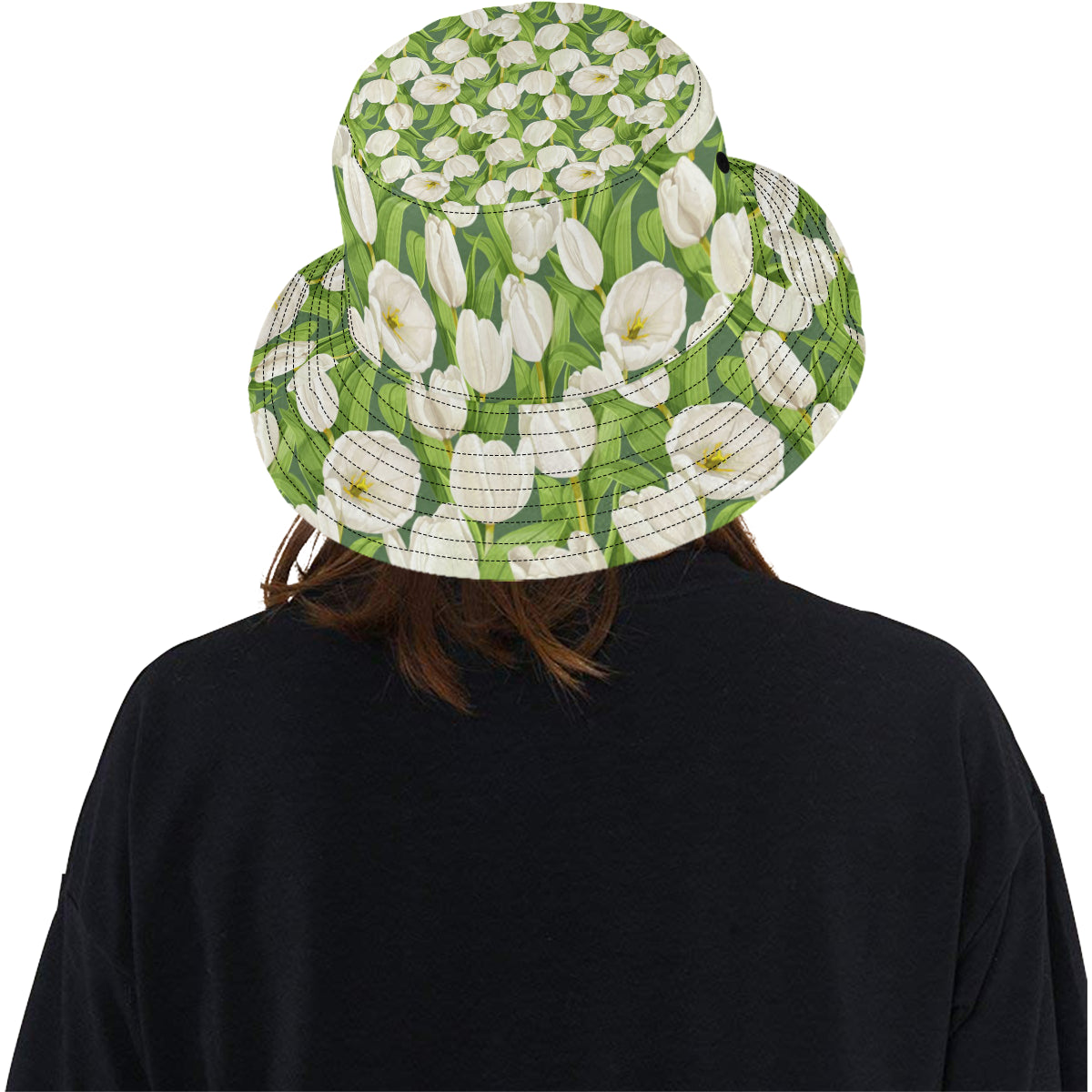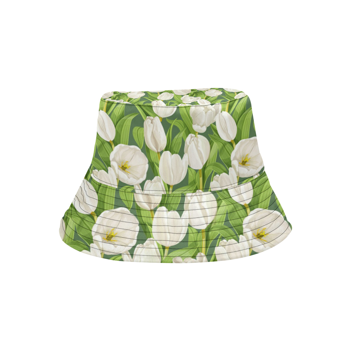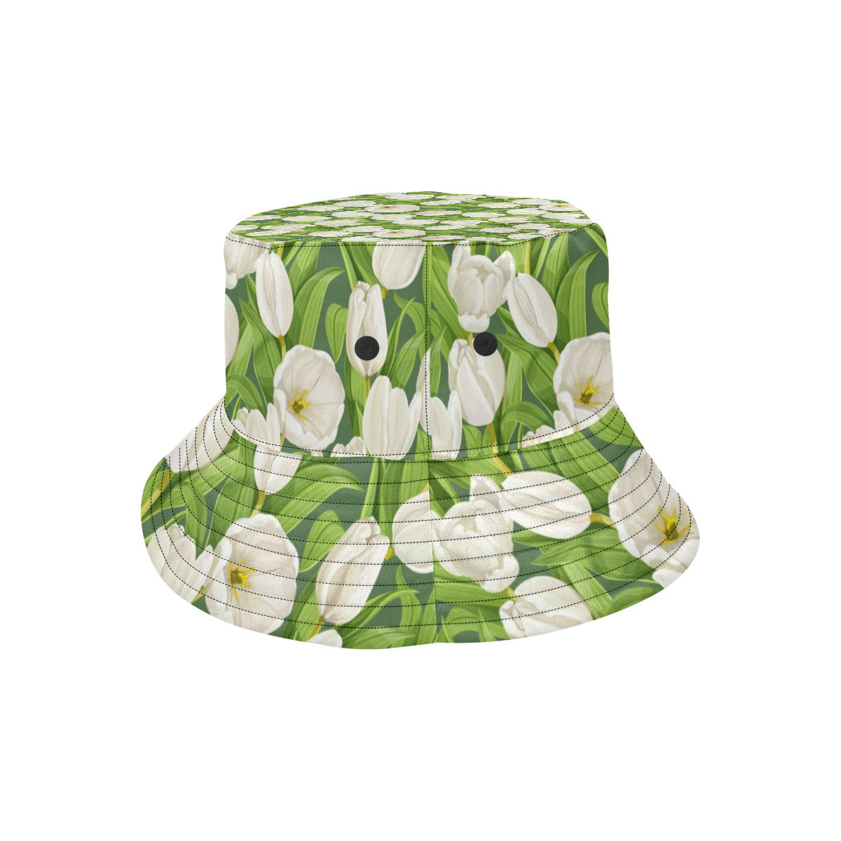 Tulip White Pattern Print Design TP05 Unisex Bucket Hat