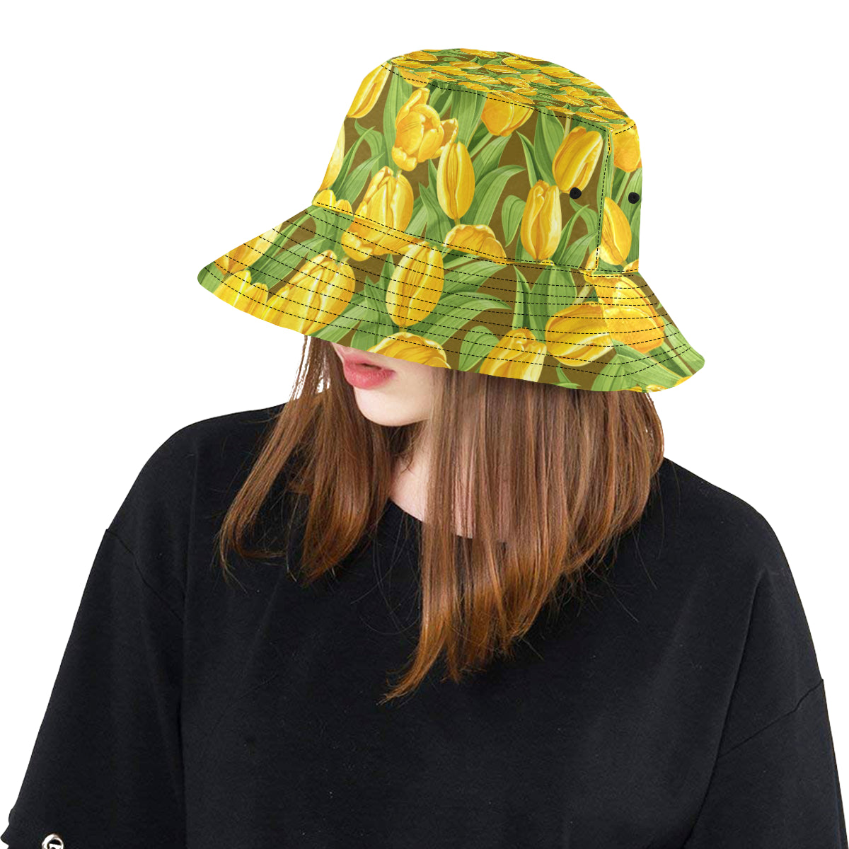 Tulip Yellow Pattern Print Design TP010 Unisex Bucket Hat