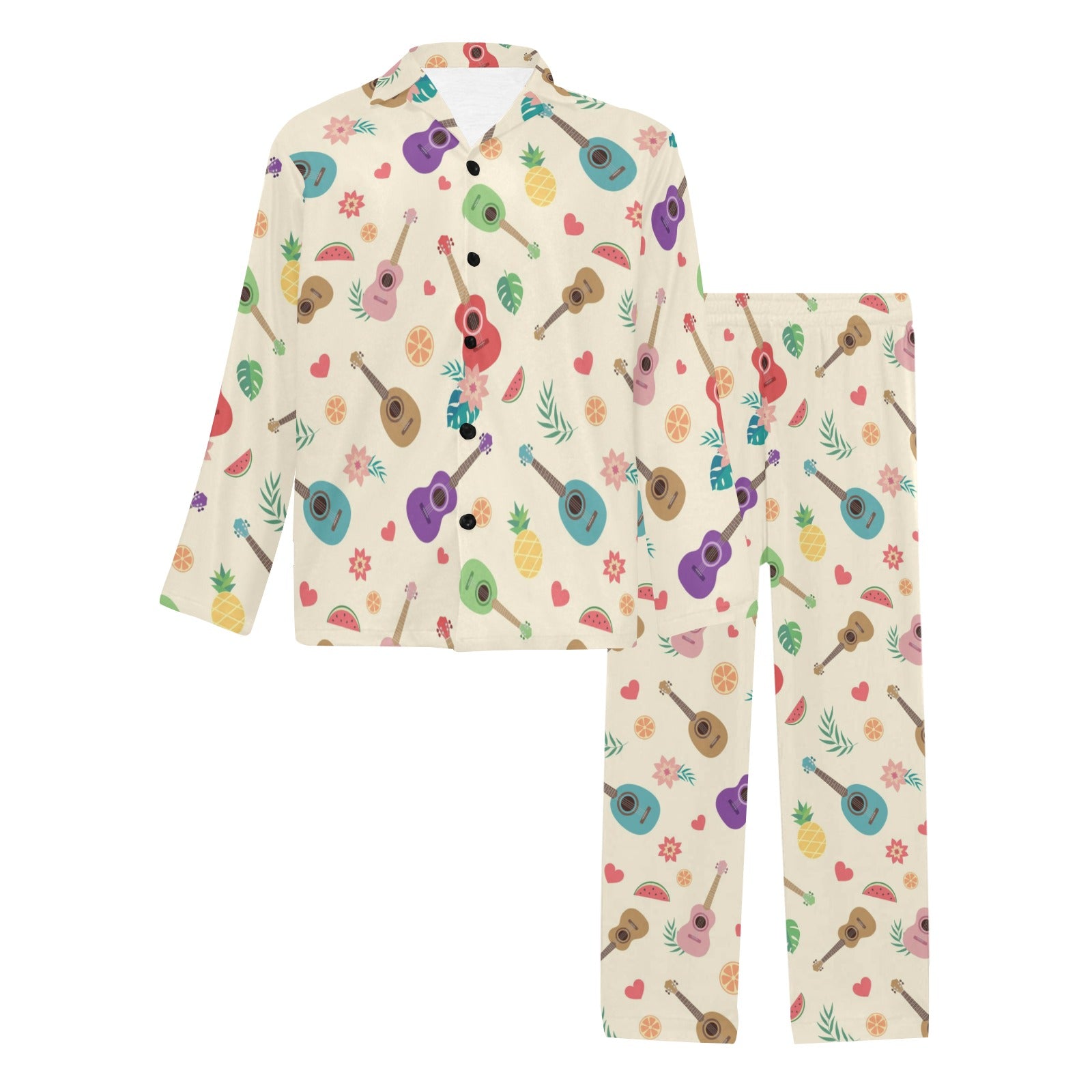Ukulele Pattern Print Design 01 Men's Long Pajama Set custom-made-to-order and handcrafted to the highest quality standards.